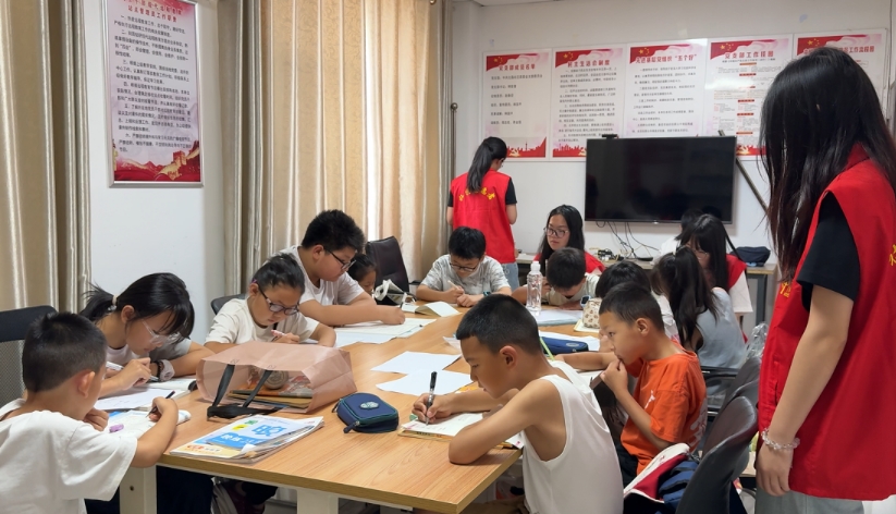 大学生志愿者们已经早早等在教室里,他们穿着统一的志愿者服装,脸上洋溢着青春的笑容。这些志愿者刚从校园里走来,太懂小学生写作业时的“小纠结”:有时是题目绕不过弯,有时是粗心大意,有时是贪玩分心。“作业有不会的吗?”“来,咱们一起看看这道题。”“你看,这样一算,答案就出来啦。”在志愿者的耐心陪伴下与慢慢讲解中,孩子们愉快地学习,没有了往日的焦虑和烦躁。“孩子在社区既能写作业,又能学到东西,我们上班也安心多了。”家长们的言语中流露出感谢之情。
