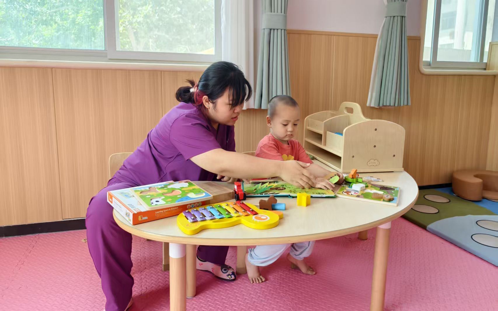 托育中心教师密切观察每个宝宝的性格特点(如敏感型、活泼型、慢热型),量身定制引导策略。对于慢热型宝宝,教师会尊重其节奏,先安排其喜爱的安静活动(如布书时间),再循序渐进地引导融入集体,而非强制“合群”。