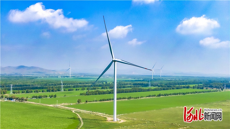 7月6日拍摄的沽源县闪电河乡一处风电场。 河北日报记者 田 明摄