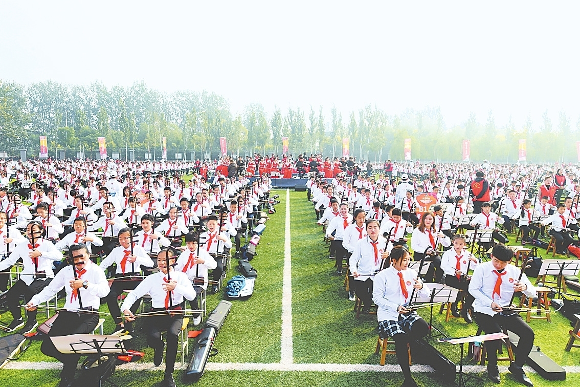 乘势而上,饶阳县进一步拓展产业边界,组建农民乐团,举办“乐动中国”饶阳(国际)民乐大赛、鼓王争霸赛等大型活动,构建起“赛事+作曲+演艺+培训+旅游+制造”的全产业链条,打造独具特色的“民乐+”发展新模式。此外,他们依托民乐产业优势,积极推进“民乐进校园”“民乐研学”等活动,加大师资投入,为学校配备民族乐器,让传统民乐在校园中生根发芽。