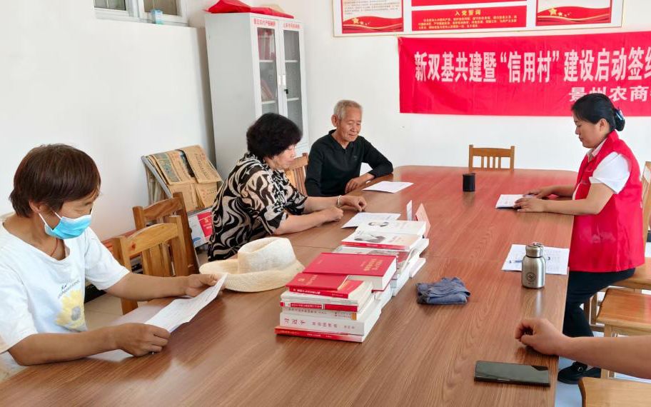 新“双基”筑基:整村授信,信用变实在财富。在杨院镇大辛庄村委会,新“双基”共建暨“信用村”建设启动签约仪式正火热进行中。工作人员向村干部和村民代表详细解读“信用村”建设的重要意义:“咱们的目标,是把咱村打造成‘信用村’!通过采集大家真实的信用信息,建立档案,整村授信。以后咱村信誉好的农户、商户,想发展更快、扩大经营的,贷款会更方便、额度更高、利率更优惠!”并现场解答了村民的相关金融问题,同时进行了征信、社保卡、反电诈、反洗钱等金融知识宣传。