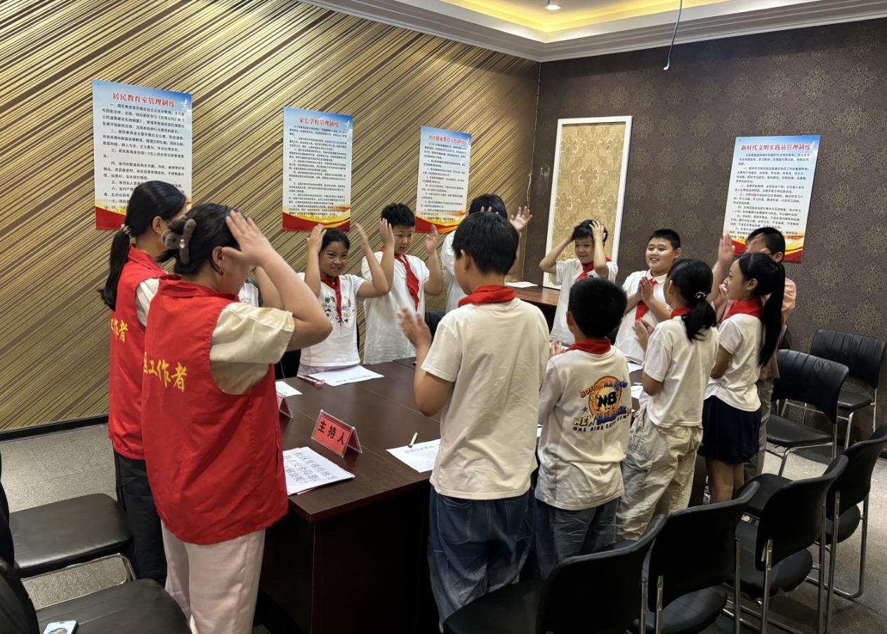 活动中,社区工作者化身“知识向导”,通过生动讲解和直观展示,为孩子们系统介绍了社区概况与上半年活动成效。孩子们听得津津有味,对生活的社区有了更立体的认识。紧接着,充满趣味的“拍拍操”破冰环节登场,欢快的节奏、轻松的互动,迅速拉近了孩子们之间的距离,现场气氛瞬间活跃起来。
