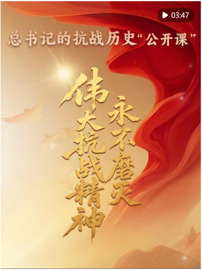 今日之中国,江山壮丽,人民豪迈,前程远大。站在新的历史起点,伟大抗战精神如巍峨的丰碑,矗立于民族记忆深处,也如不熄的火炬,照亮伟大复兴的壮阔征程。