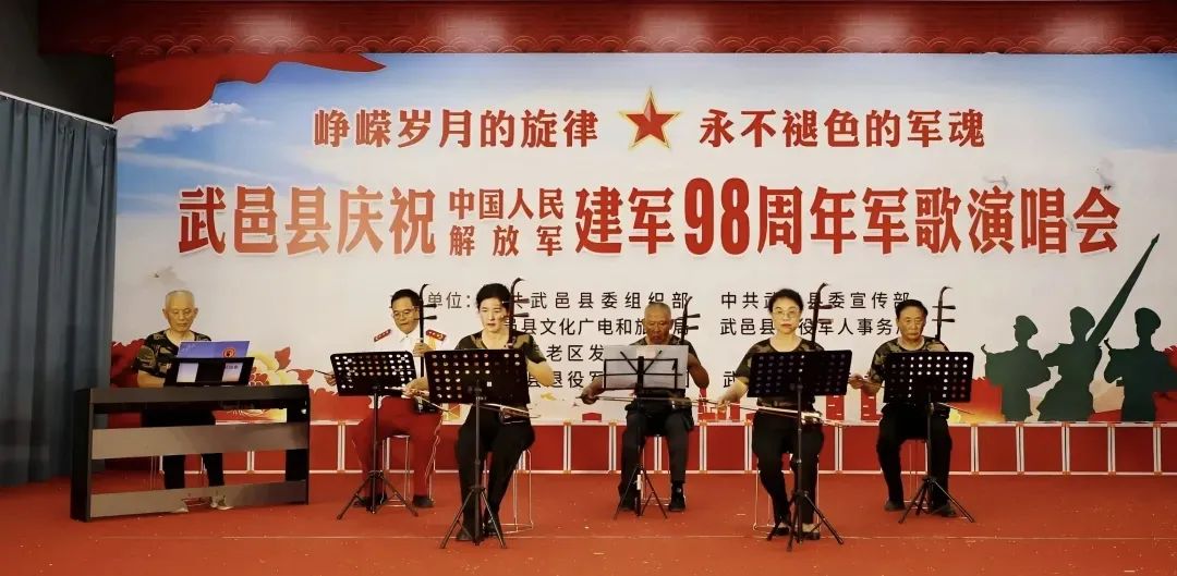 在中国人民解放军建军98周年到来之际,为深化军民鱼水深情,弘扬爱国主义精神,7月30日,由武邑县委组织部、宣传部、文旅局等部门联合举办的军歌演唱会在武邑县老年大学举行。