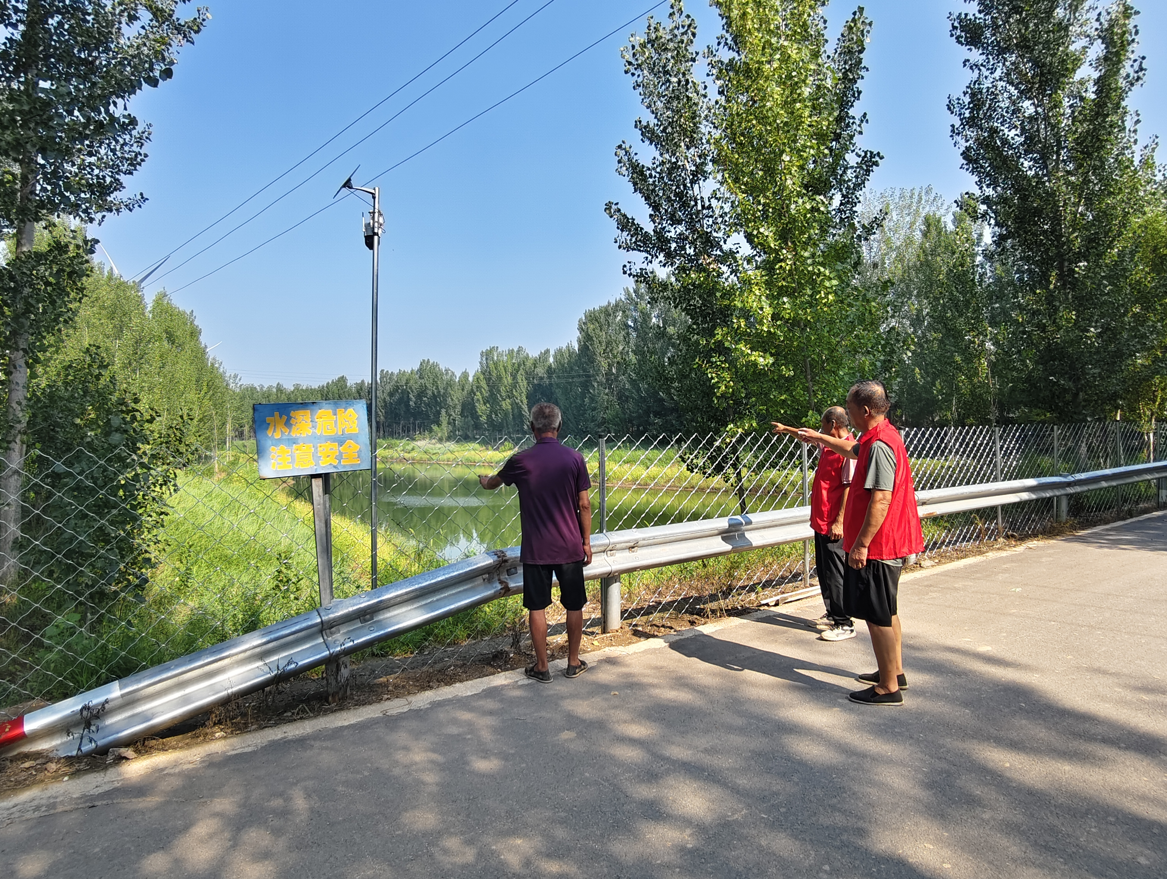 筑牢物理屏障,织密“物防网”。“这防护网拦得真扎实,孩子们在附近玩,我们也能放心些。”看到坑塘周边崭新的防护设施,蒋坊乡群众罗学武赞不绝口。针对雨季坑塘安全风险,该乡迅速部署各村行动,对51个常年有水坑塘全部完成防护栏(网)安装,将水域与群众活动区域有效隔离,并在坑塘显眼位置统一设立警示牌,“水深危险,请勿靠近”“珍爱生命,远离坑塘”等警示语时刻提醒过往群众。为强化重点区域管控,该乡还对20余个钓鱼集中的坑塘加装监控设备,通过科技手段实现实时监测,确保隐患早发现、早处置。