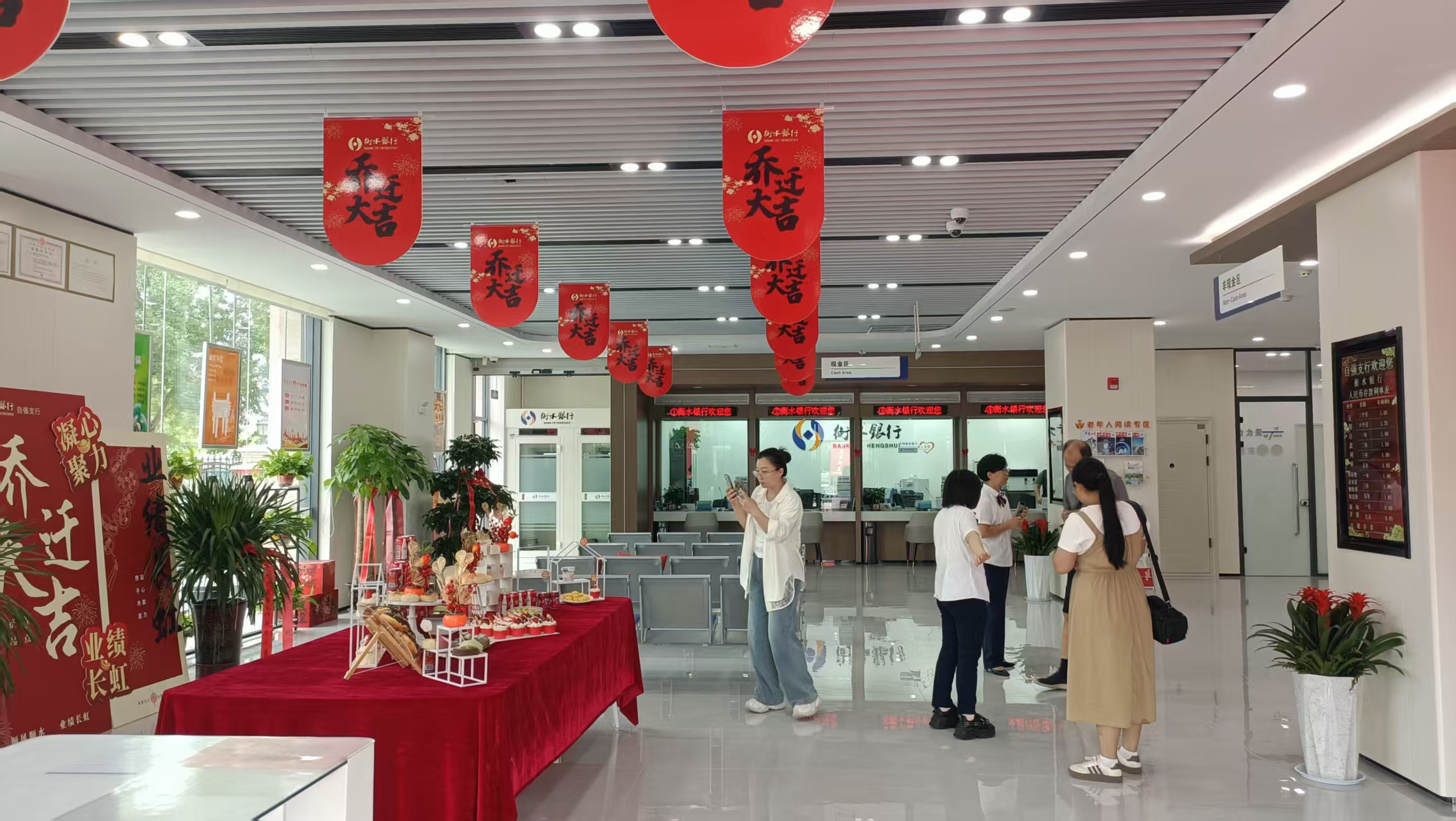 伴随着激情洋溢的锣鼓声,乔迁开业仪式正式拉开帷幕。支行门前广场,礼花绽放,锣鼓队、舞蹈队表演轮番上演,为百姓们带来了一场视听盛宴。营业厅内,工作人员精神抖擞,身着统一制服,以饱满的热情和专业的服务态度迎接每一位客户。市公安局桃城分局东门口派出所民警还为市民们带来反电信网络诈骗知识宣讲,帮助老百姓守好“钱袋子”。