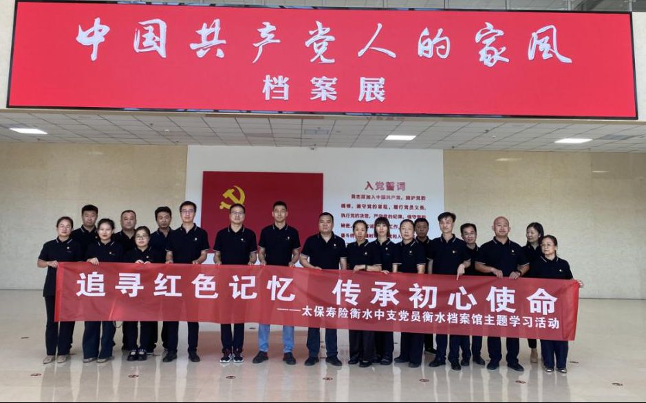 近日,中国太保寿险衡水中心支公司组织全体党员前往衡水市档案馆,开展“初心映红心 行动践使命”主题党建活动,活动旨在通过重温老一辈革命家家风,传承红色基因,进一步强化党员党性修养。