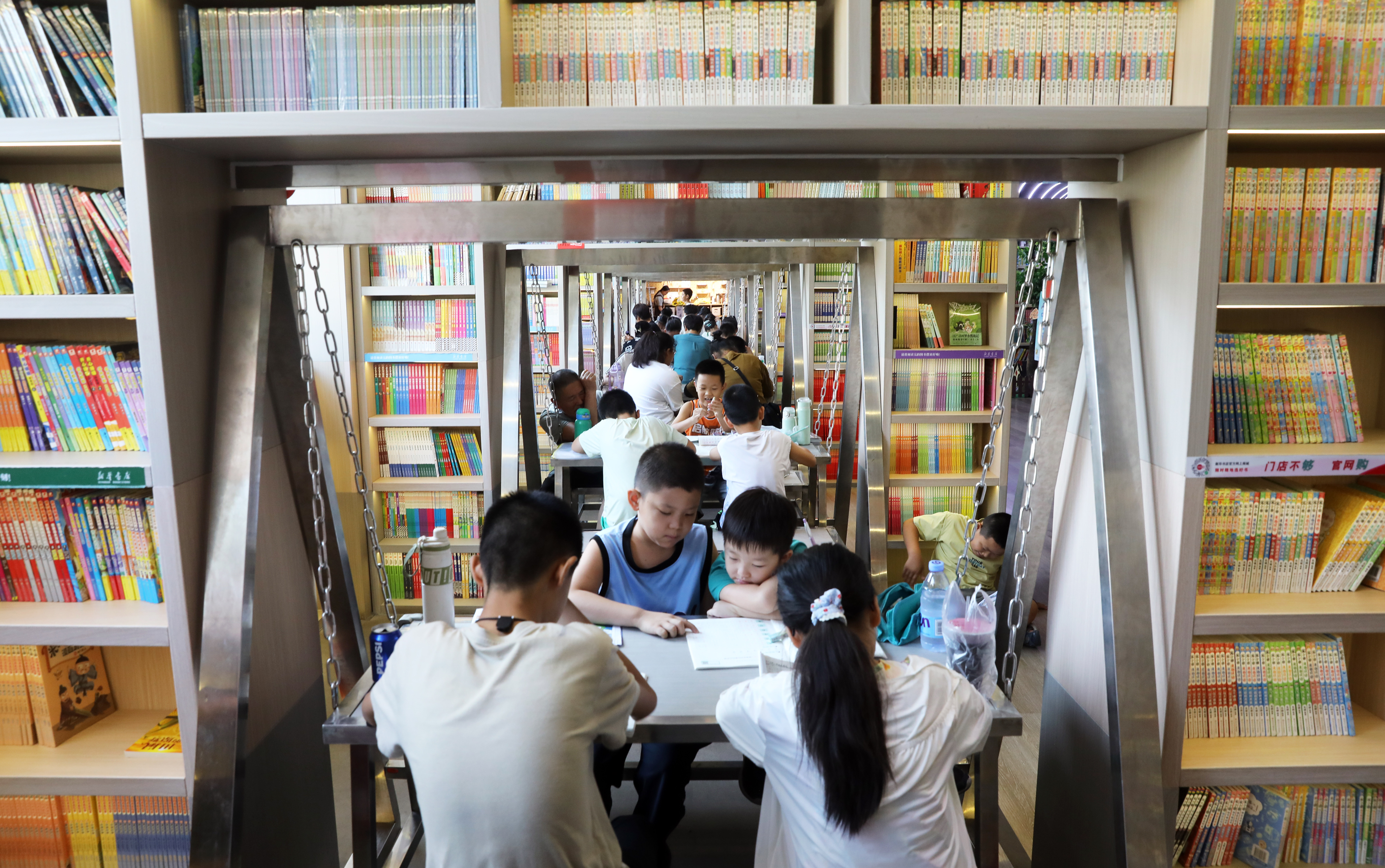 为满足读者需求,书店提前备货,增加热门书籍库存量,还专门开辟亲子阅读区和作业辅导角,为孩子们提供更舒适的阅读与学习环境。孩子们在此既能静心阅读学习,又能躲避夏日酷暑,这里也因此成为暑期亲子出行的热门选择,更让书店这一文化空间在夏日焕发出别样生机。