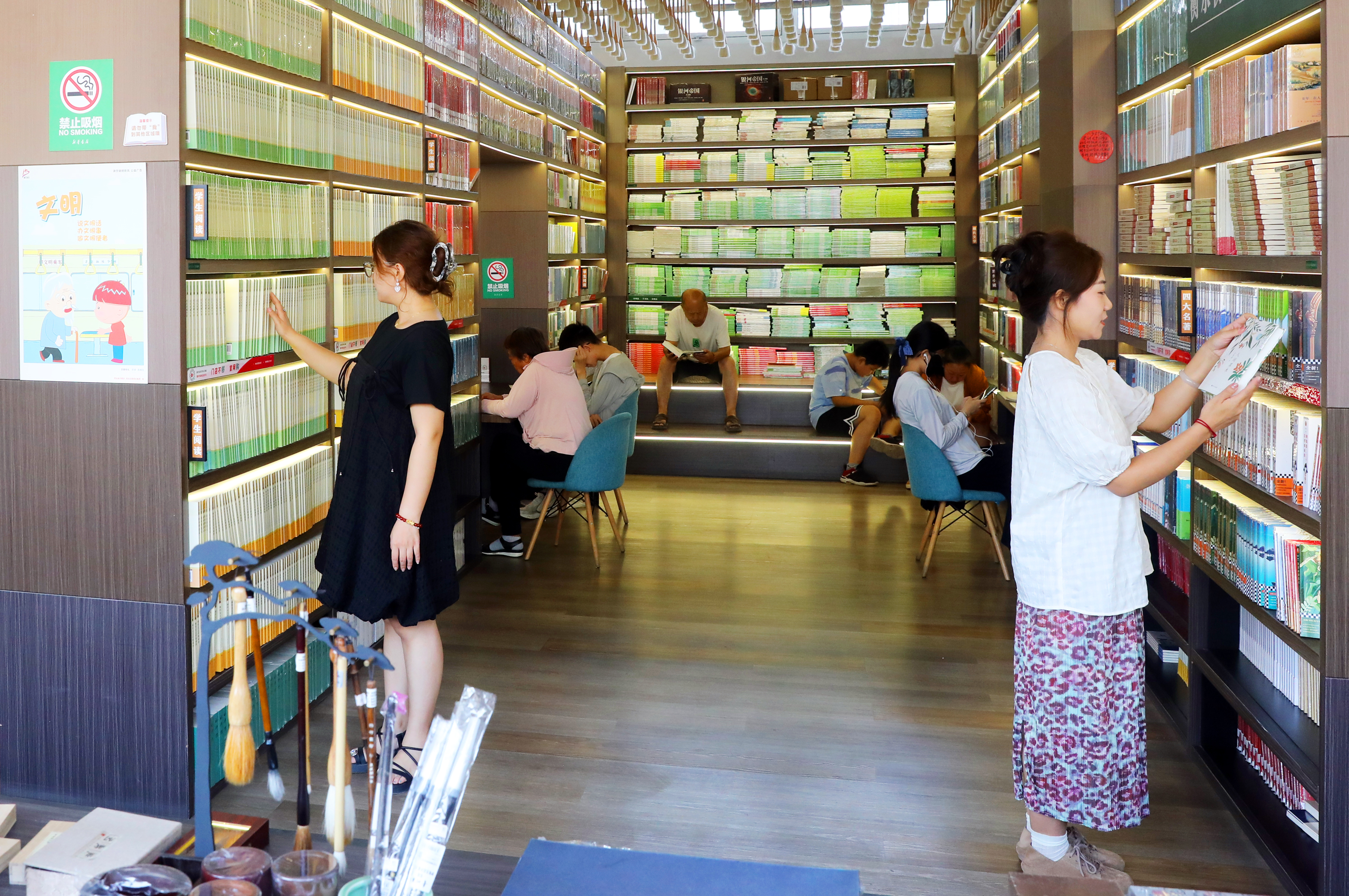 步入书店,阅读区内空调送来的清凉与淡淡的油墨香交织,迅速驱散室外燥热。书店内书架林立,各类书籍摆放整齐,分区明确,“现代文学”“青春校园文学”等标识清晰。青少年读物、科普类书籍及教辅资料销量增长显著。