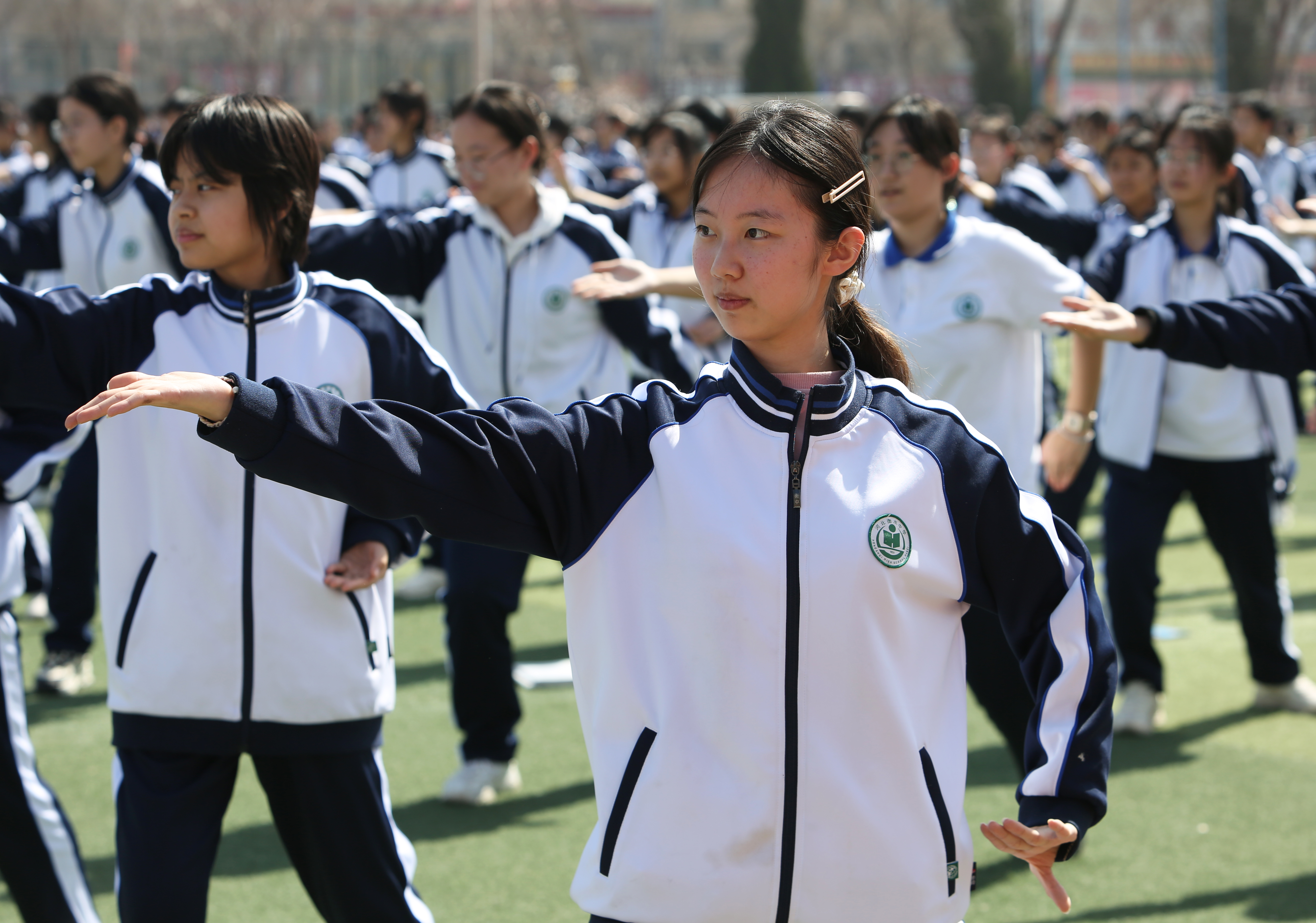 “今天是吉祥欢聚的日子耶,同胞们欢聚一堂耶……”伴随着藏族歌曲《吉祥舞蹈》悠扬的曲调,衡中学子在操场上翩翩起舞,整齐划一地做着融合藏族舞步的体操动作,尽显青春活力。