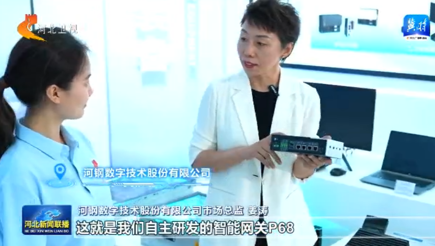 这就是我们自主研发的智能网关P68,虽然小小的一个盒子,现在是能够实现每秒钟一万点的高并发能力,这条产线上有一万个不同的信息点,都能够通过它采集上来。(它)支持95%以上的工业协议,99%以上的工业场景。
