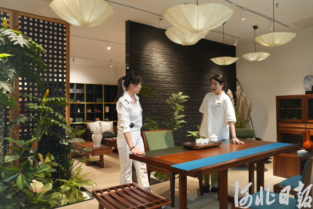 7月4日,红星美凯龙保定高新商场店,市民在选购实木家具。河北日报记者许佳奇摄