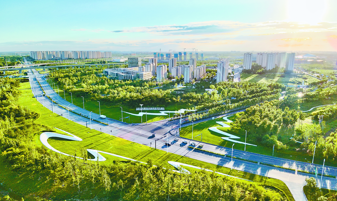 盛夏的临空经济区(廊坊),绿树成荫,一条条蜿蜒曲折的水系穿流其中宛如玉带,滋润着这座航空新城。