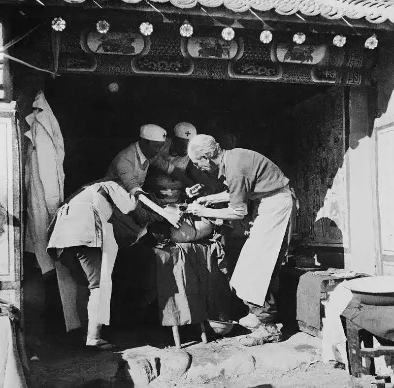 这张白求恩在一座破败小庙手术的工作照上,对面的助手之一就是林金亮。弥留之际,白求恩还给他留下了珍贵的医疗器械。