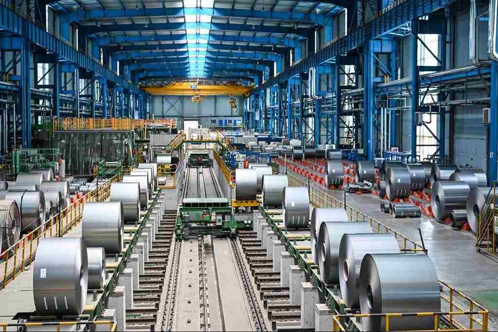 河钢集团唐钢公司员工在查看高强汽车板生产线。
