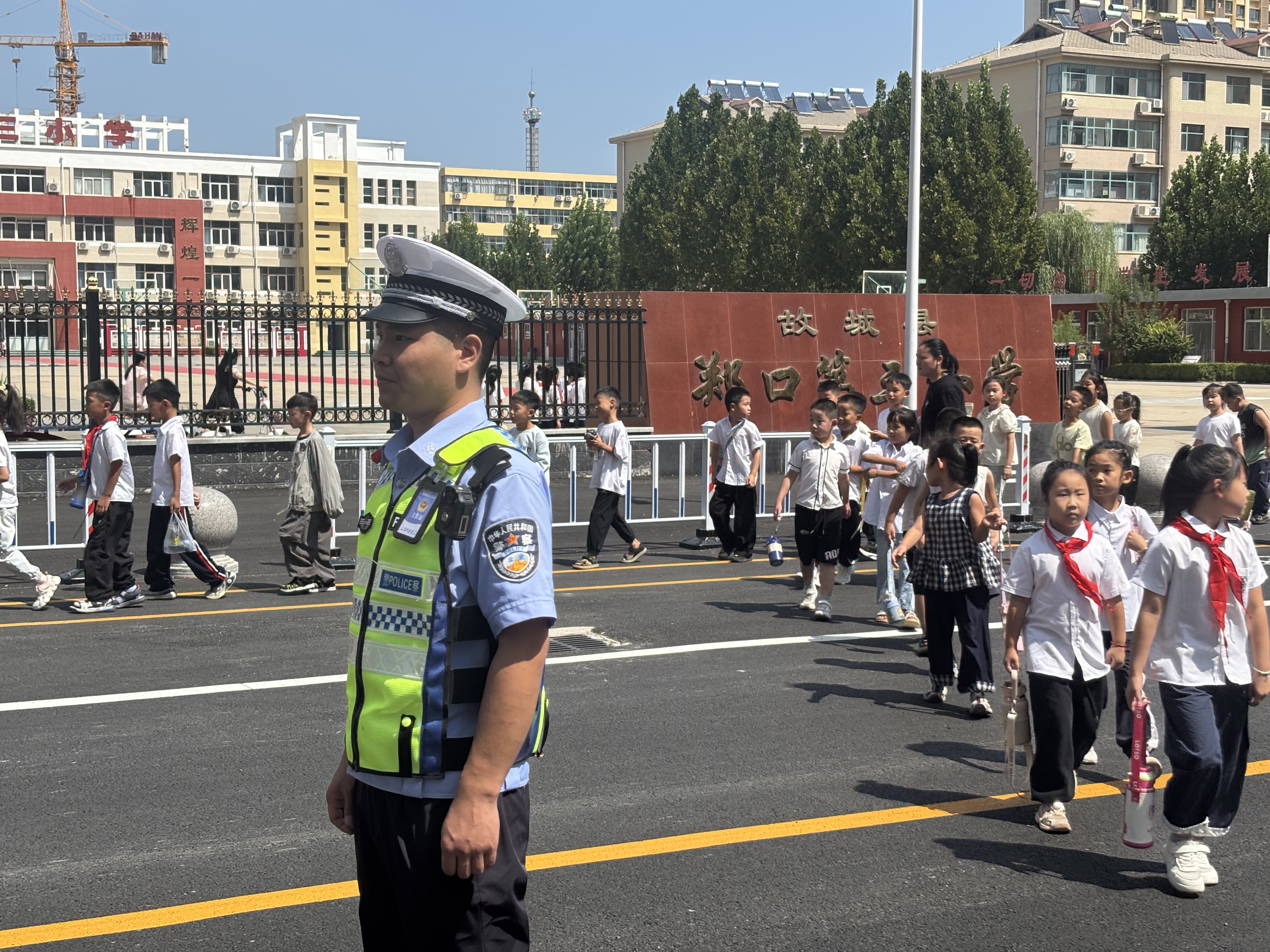 故城交警开启“护学”工作。 邱旭 摄