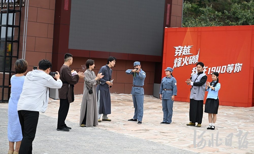 9月2日,游客观看由邢台抗大陈列馆编排的行进式演出《上抗大》。