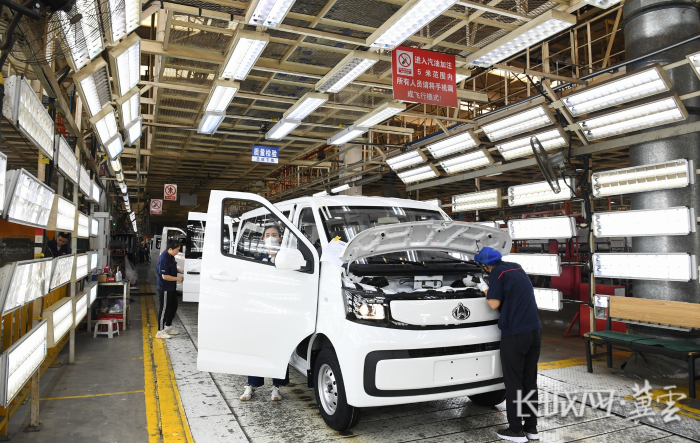 工人正在对长安凯程V919进行检测。白永民 摄