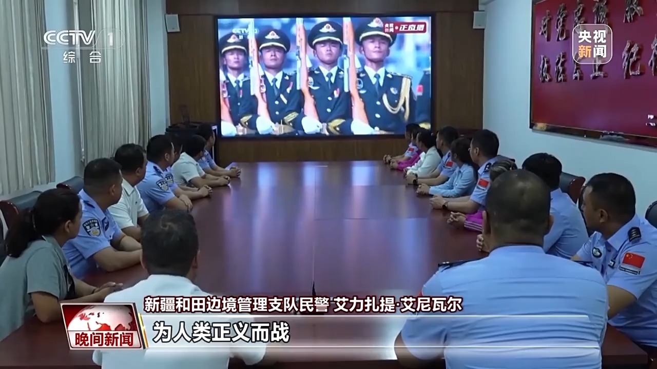 新疆和田边境管理支队民警 艾力扎提·艾尼瓦尔:习近平总书记说为国家生存而战、为民族复兴而战、为人类正义而战,令我倍感振奋、备受鼓舞。作为一名戍边民警,为祖国守护西北大门,我感到无上光荣。我将用忠诚和担当守护万家灯火,一方平安。