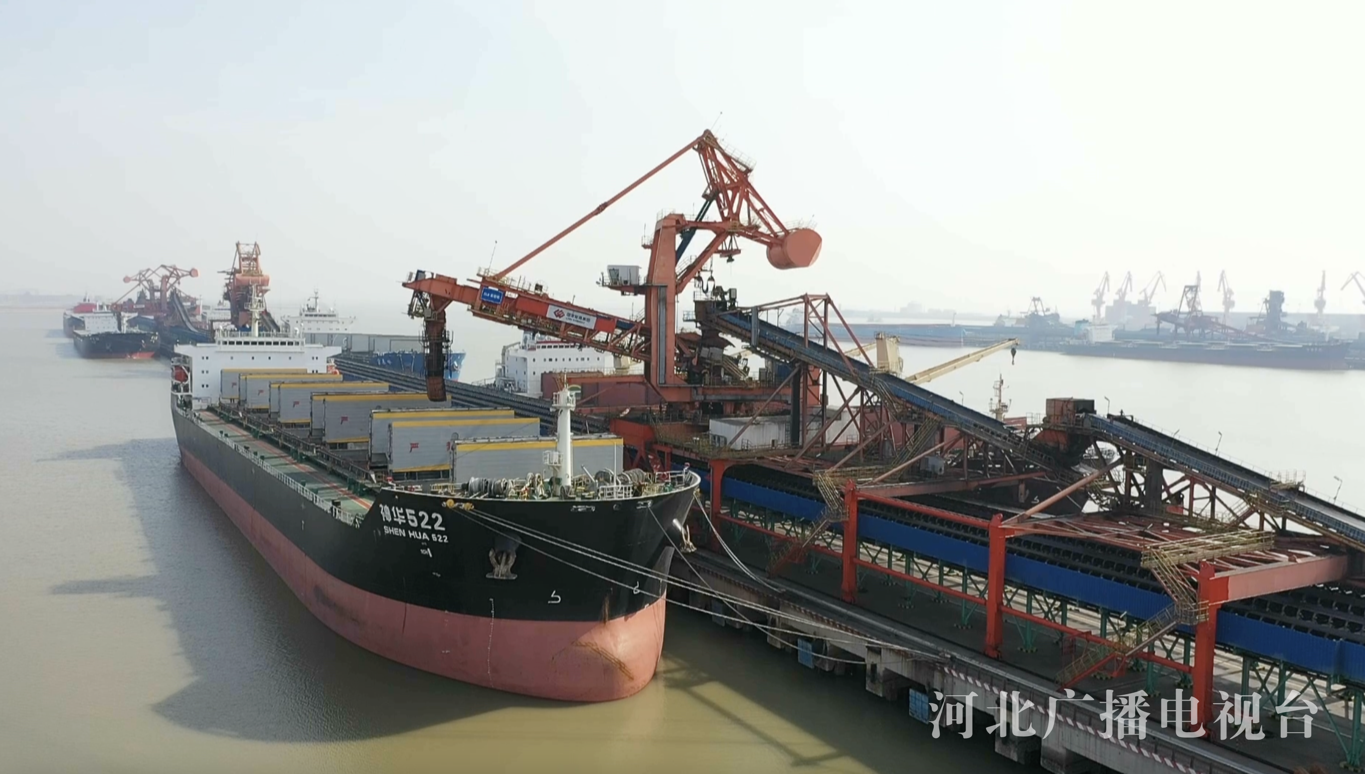 国能黄骅港务有限责任公司装船指导员张勇说:“我们这边是采用自动化作业,通过北斗定位,实现无人装船。”