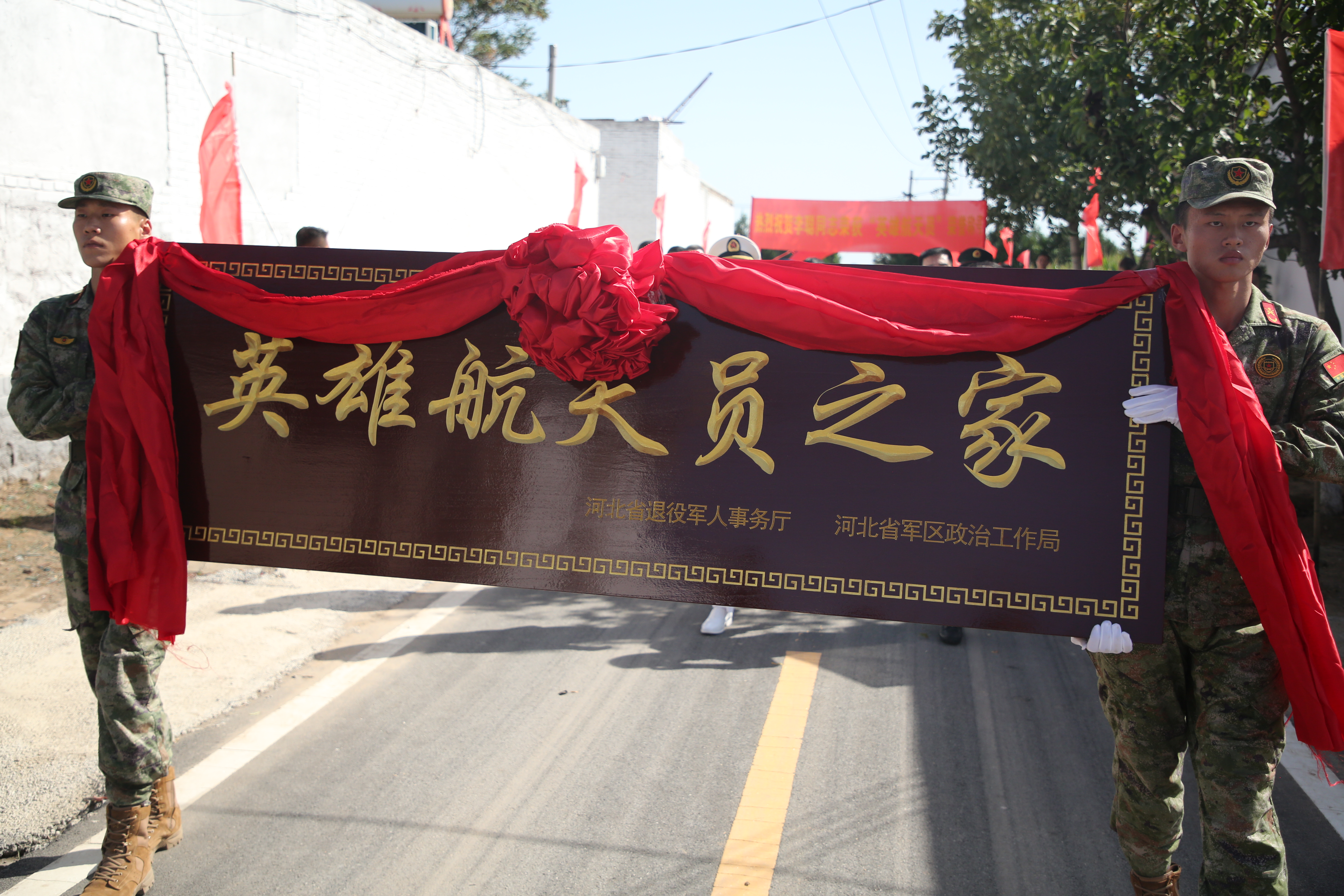 由河北军地有关单位和部门组成的立功受奖“报喜团”来到“英雄航天员”李聪的家乡南旺村