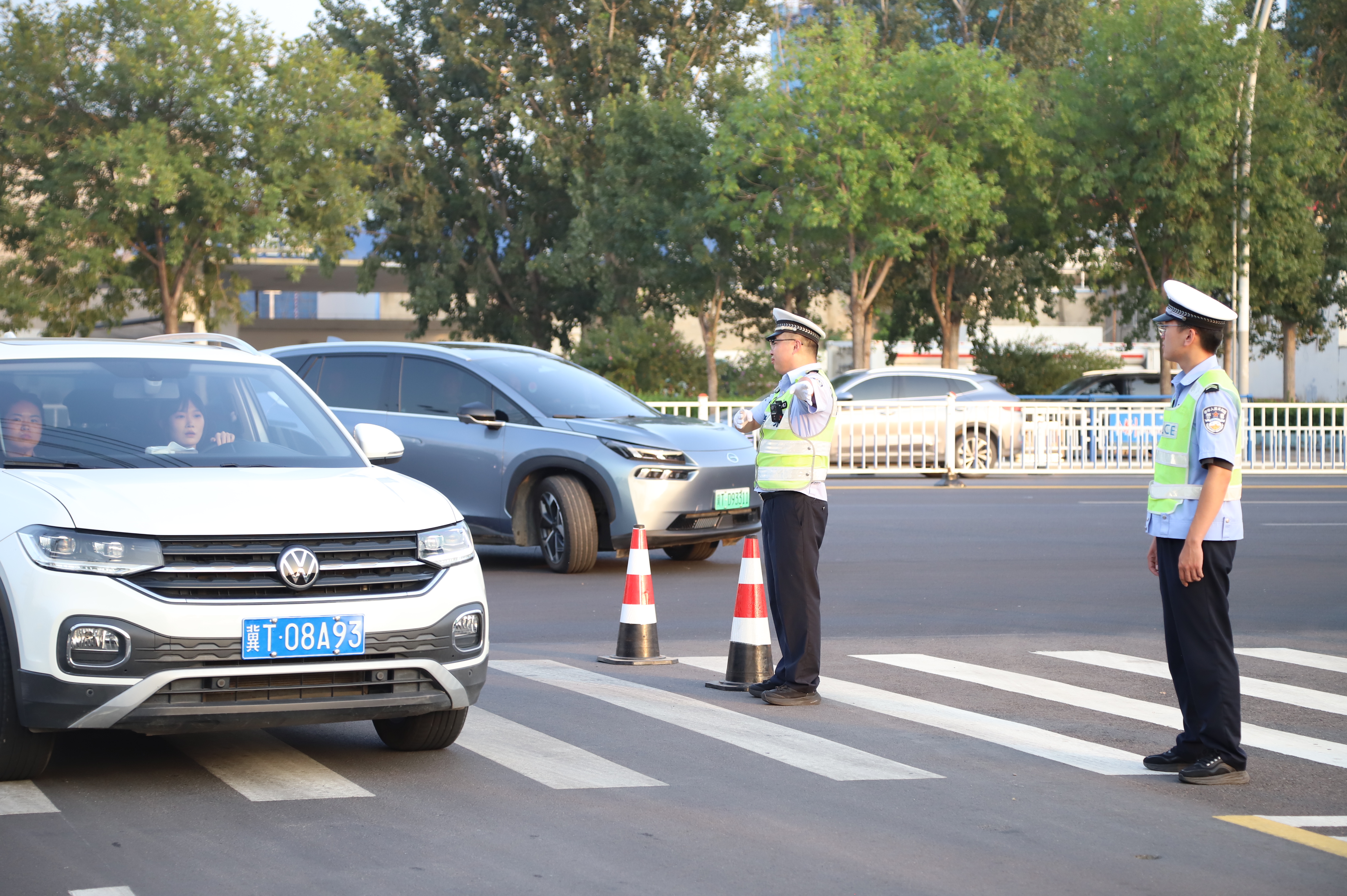 17时,距离演唱会开场还有两个半小时,记者在奥体中心北门滏阳路与酒厂街交叉口看到,交警们早已忙碌起来。只见几名身着反光背心的交警站在车流中指挥交通,时而引导车辆绕行,时而提醒行人注意安全。遇到问路的观众,他们立即指着路线细细讲解,耐心得像“活导航”。奥体中心北门口,几名交警组成“人墙”,引导观众有序排队入场,看到有车主想在路边停车,民警立即上前告知:“这里禁停,往前右拐可以停车,谢谢配合!”