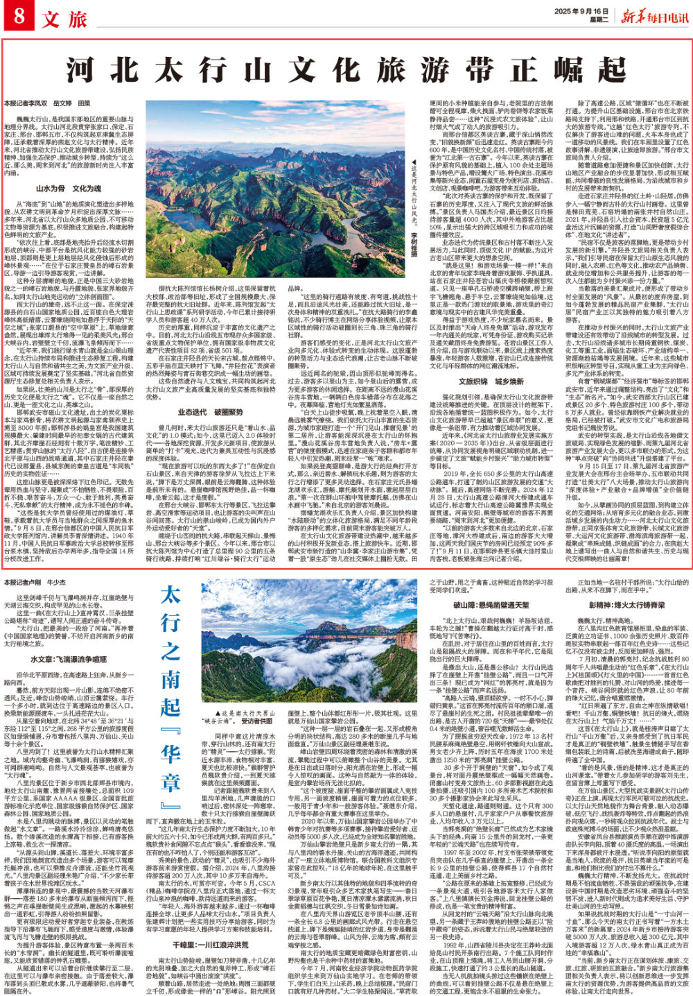 随着道路愈加便捷和景区加快创新,太行山地区产业融合的步伐显著加快,形成相互赋能、共同增值的良性发展格局,为沿线城市和乡村的发展带来新契机。