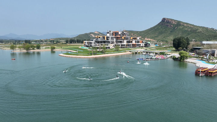 如果说登高望群峰,是游太行的经典打开方式,那么,亲近碧水、解锁玩水乐趣,则为游客的太行之行增添了更多灵动选择。在石家庄元氏县蟠龙湖欢乐汇,游艇、摩托艇划开水面,激起层层白浪。“第一次在群山环抱中驾驶摩托艇,仿佛在山水画中飞驰。”来自北京的游客刘晨说。