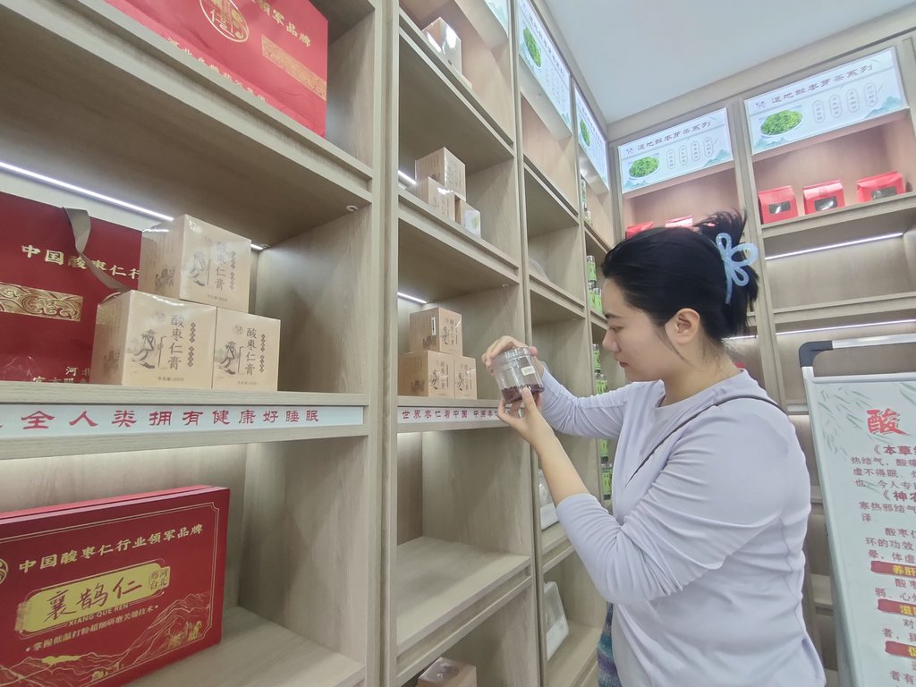 一名消费者正在参观位于邢台市内丘县的中国邢枣仁特色馆。河北日报资料片