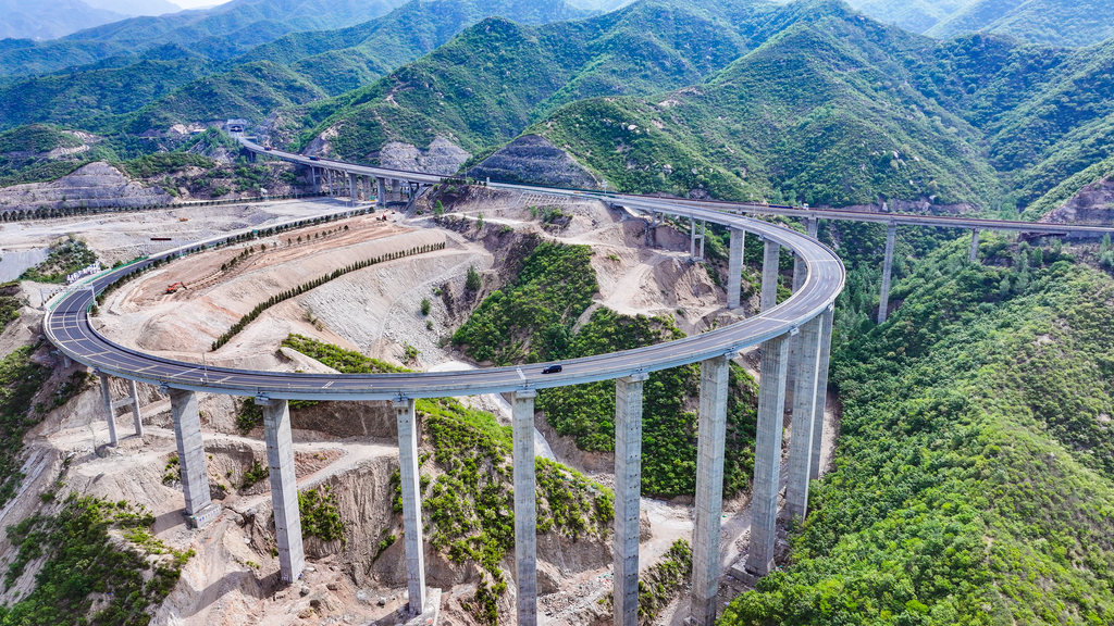 车辆行驶在京蔚高速小五台山大桥上。 河北日报记者 耿辉摄