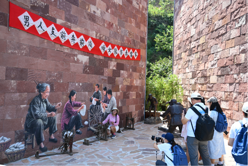 9月10日,游客在邢台市信都区浆水镇“抗大1940街区”打卡游玩。河北日报记者赵永辉摄