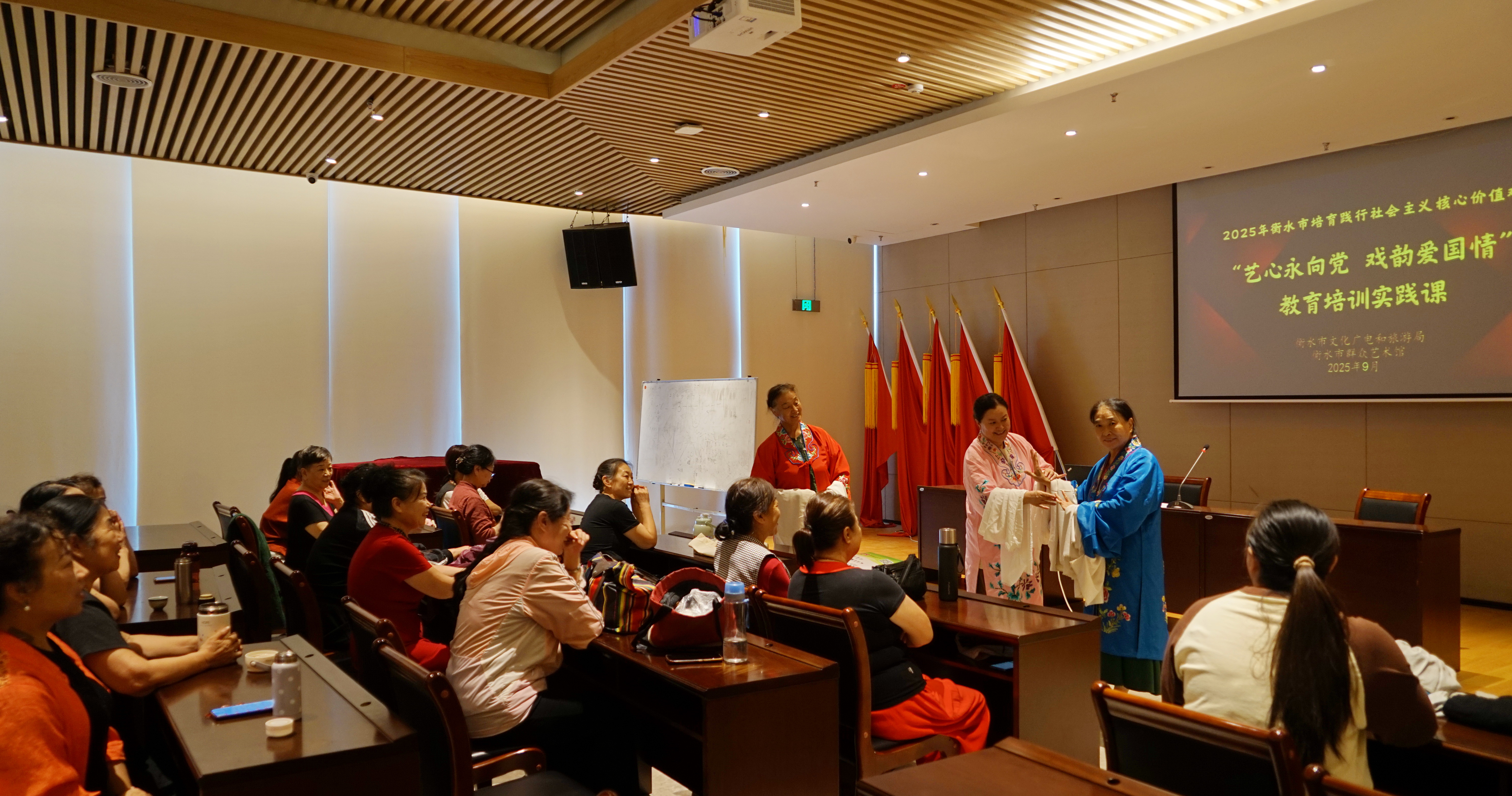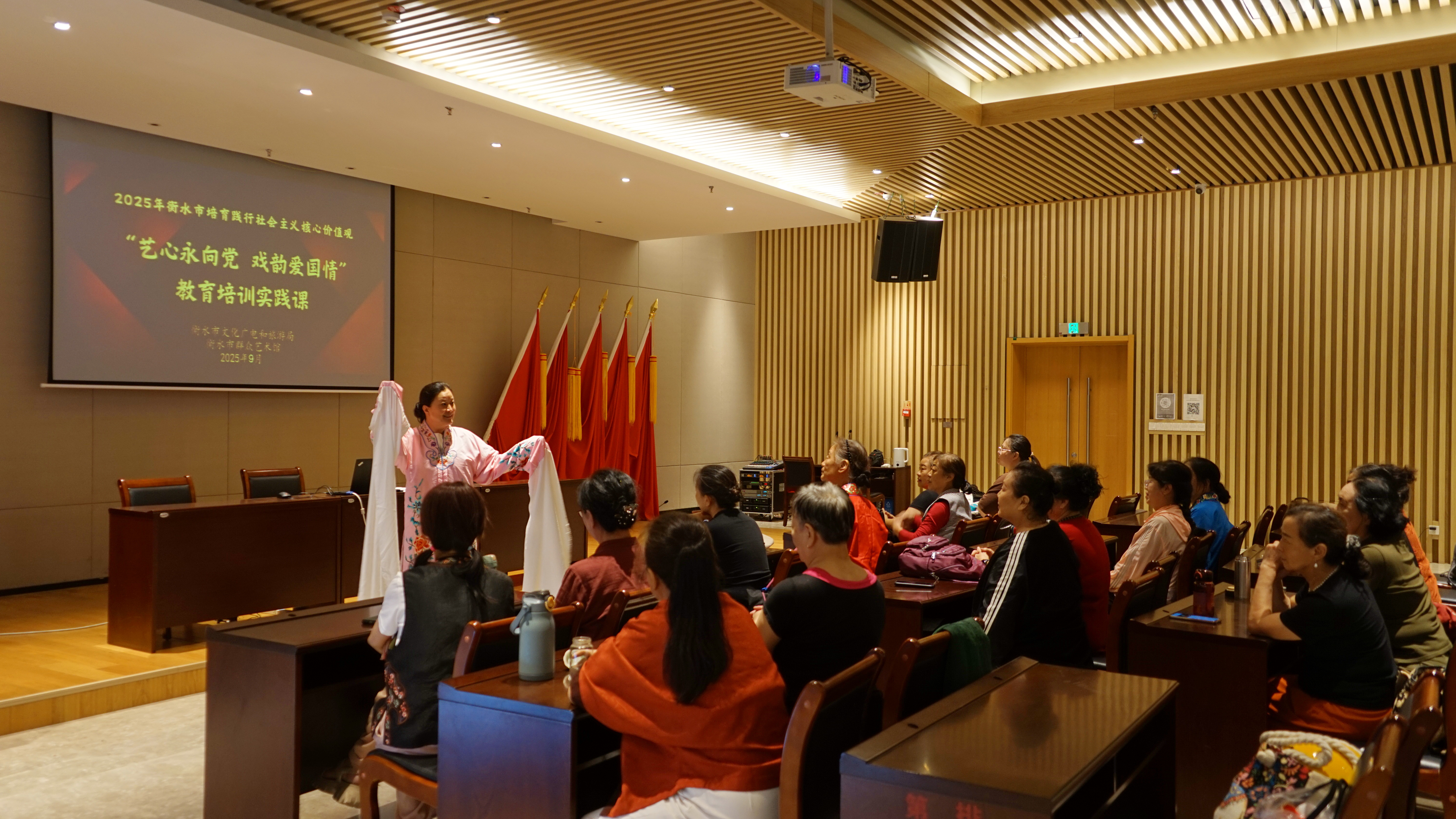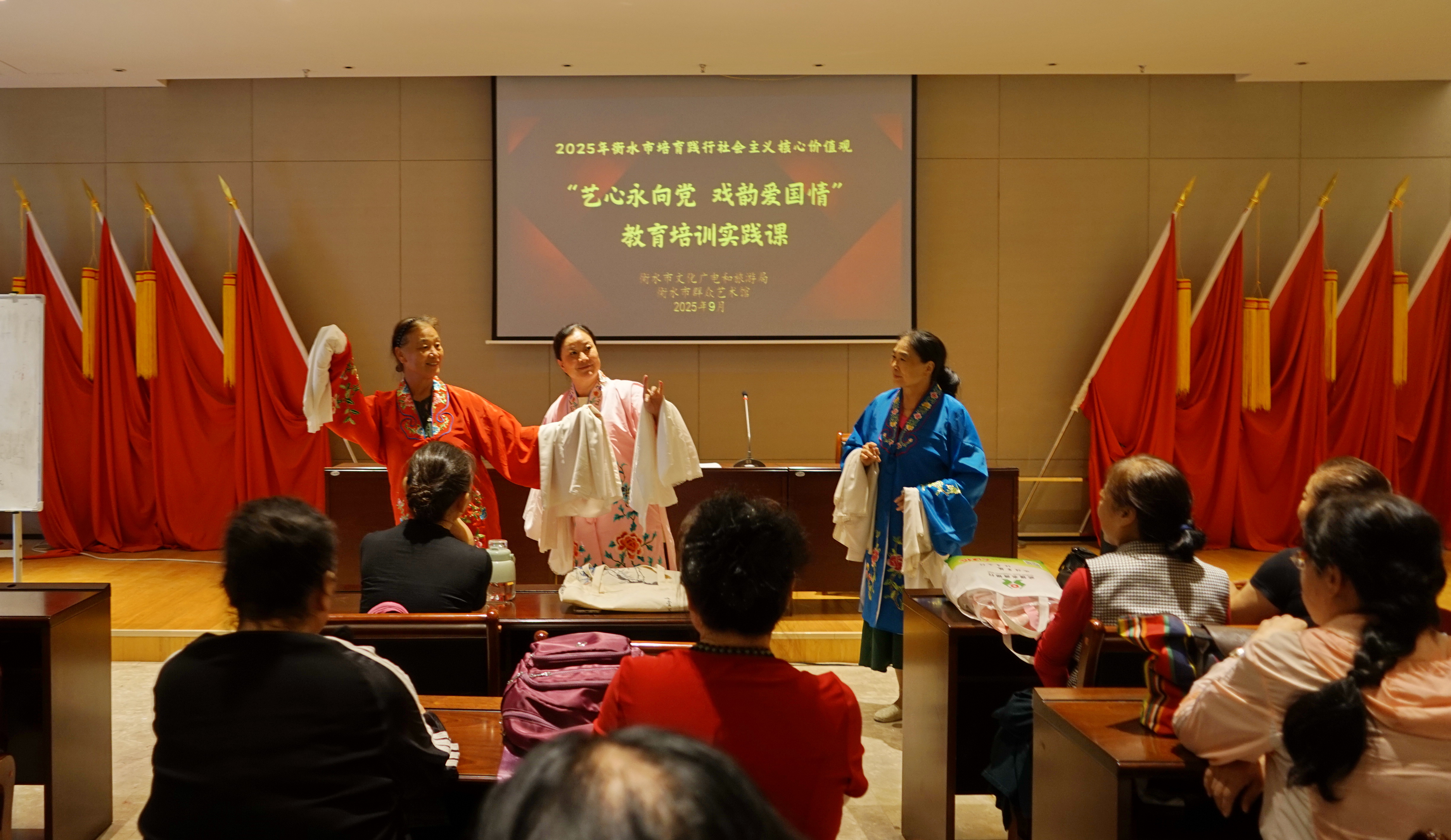 为进一步践行社会主义核心价值观,用传统戏曲涵养群众深厚的爱国情感,9月16日,由市文化广电和旅游局主办、市群艺馆承办的社会主义核心价值观宣传教育——“艺心永向党 戏韵爱国情”实践活动在市文化艺术中心二楼市民大讲堂举办。
