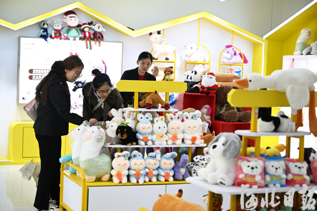 9月16日,在邢台市抗大1940街区“县”在出发·河北县域特色产业赋能文旅市集上,游客在选购毛绒玩具。河北日报记者 赵永辉摄