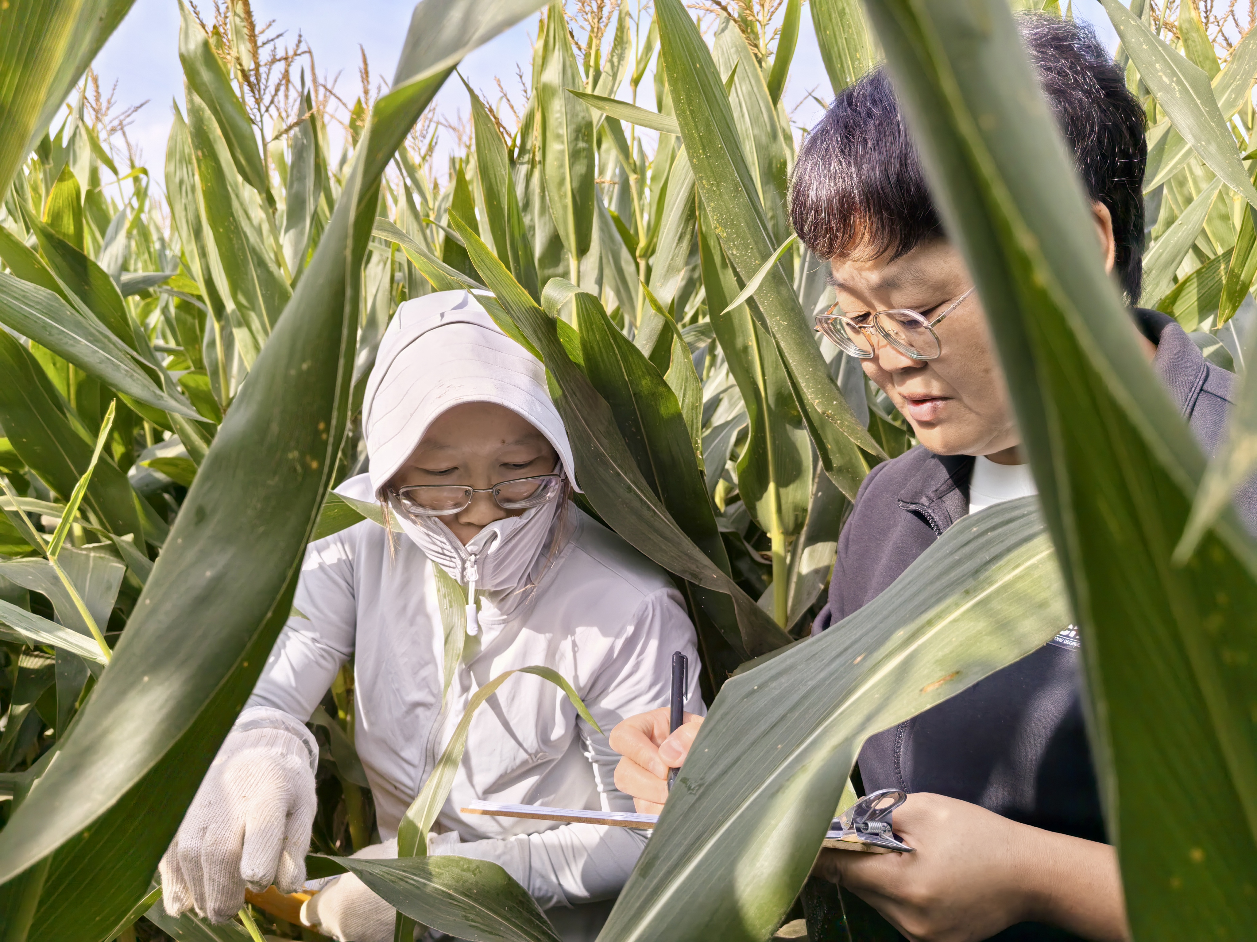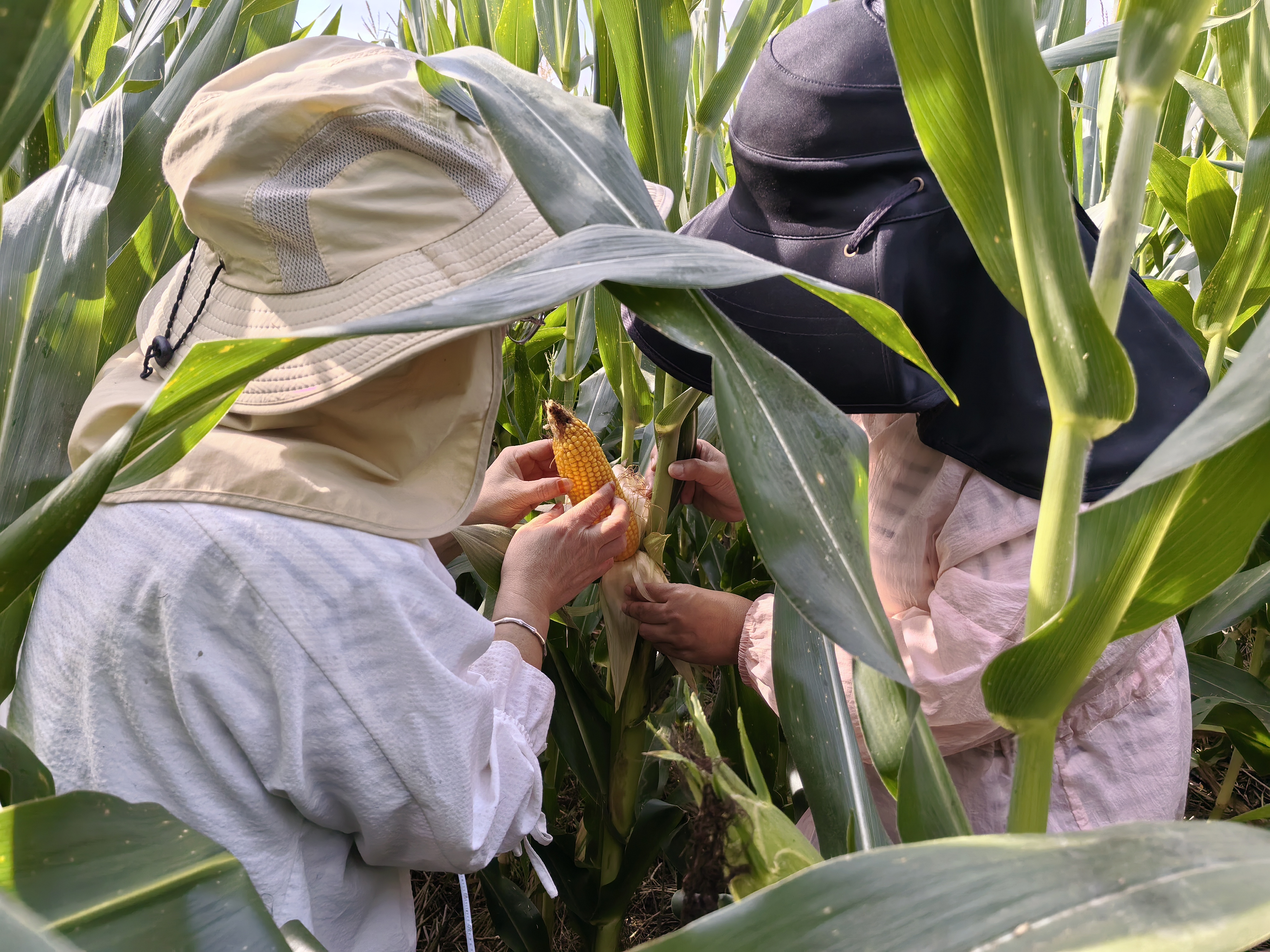 在示范田间,两部门服务人员分工协作,直奔生产一线。他们细致查看不同地块玉米的整体长势、土壤墒情、病虫害发生情况,确保掌握作物生长的真实状态。同时,围绕产量测算关键指标,工作人员现场测量玉米行距、株距,清点穗粒数、空杆数与双穗数,通过科学数据采集,精准研判当前玉米生长态势,为后续产量预测提供了扎实、可靠的第一手依据。