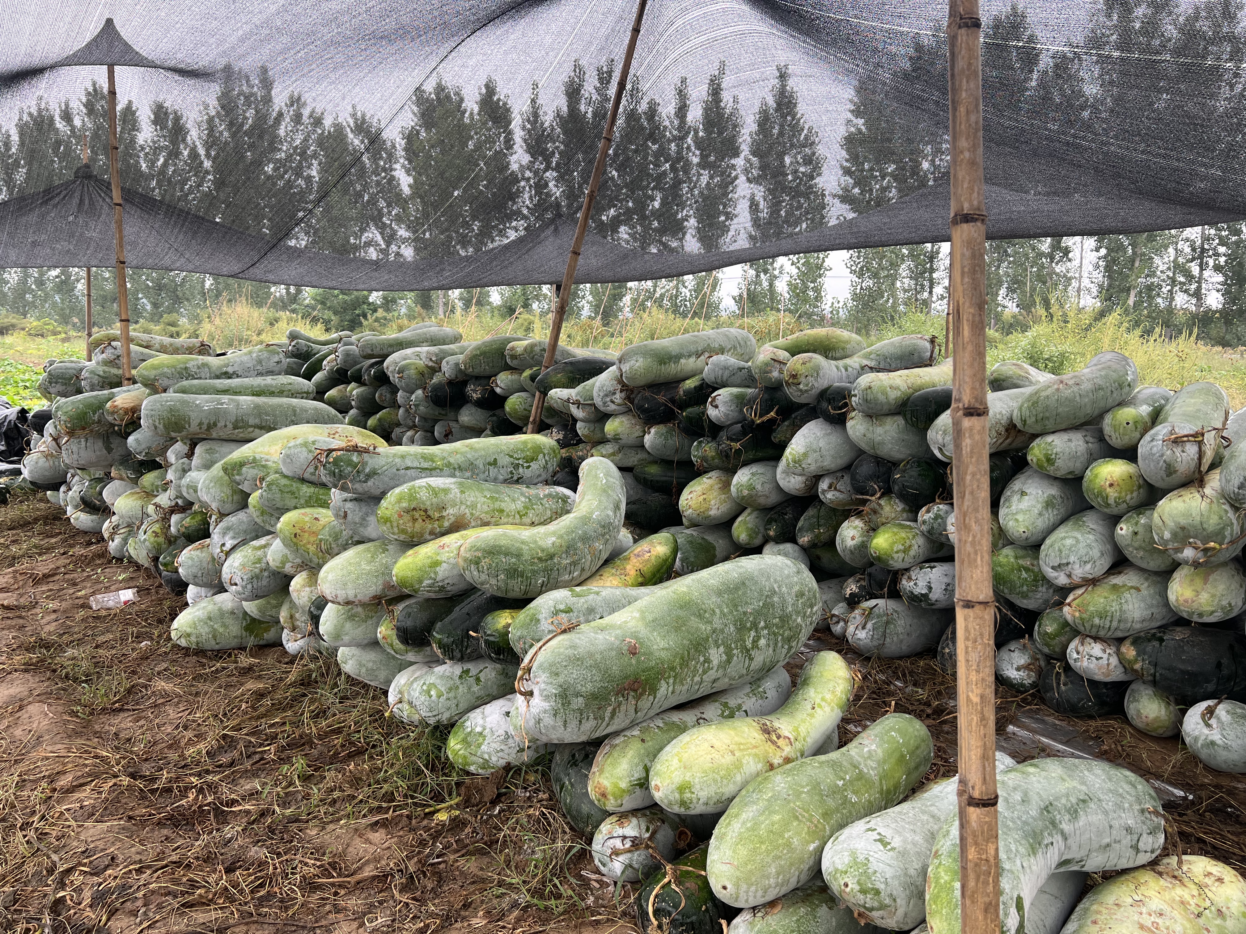 “今年是第一年种黑皮冬瓜,本就是抱着尝试的心态,没想到收成这么喜人。”李鹏蹲下身,指尖轻轻抚过冬瓜光滑的表皮,眼里满是藏不住的笑意。当初敲定种植品种时,他和村“两委”反复琢磨,最终选择种植黑皮冬瓜——不光成本低、产量高,还抗病性强、耐储运,收下来的冬瓜色泽鲜美,不管是鲜卖还是深加工都合适。如今到了收获季,这份惊喜比预期更甚:地里的冬瓜单个能长到70斤,亩产能稳稳达到2万斤,每天光是采收量就有90吨,沉甸甸的收成正为村集体带来实实在在的收入。
