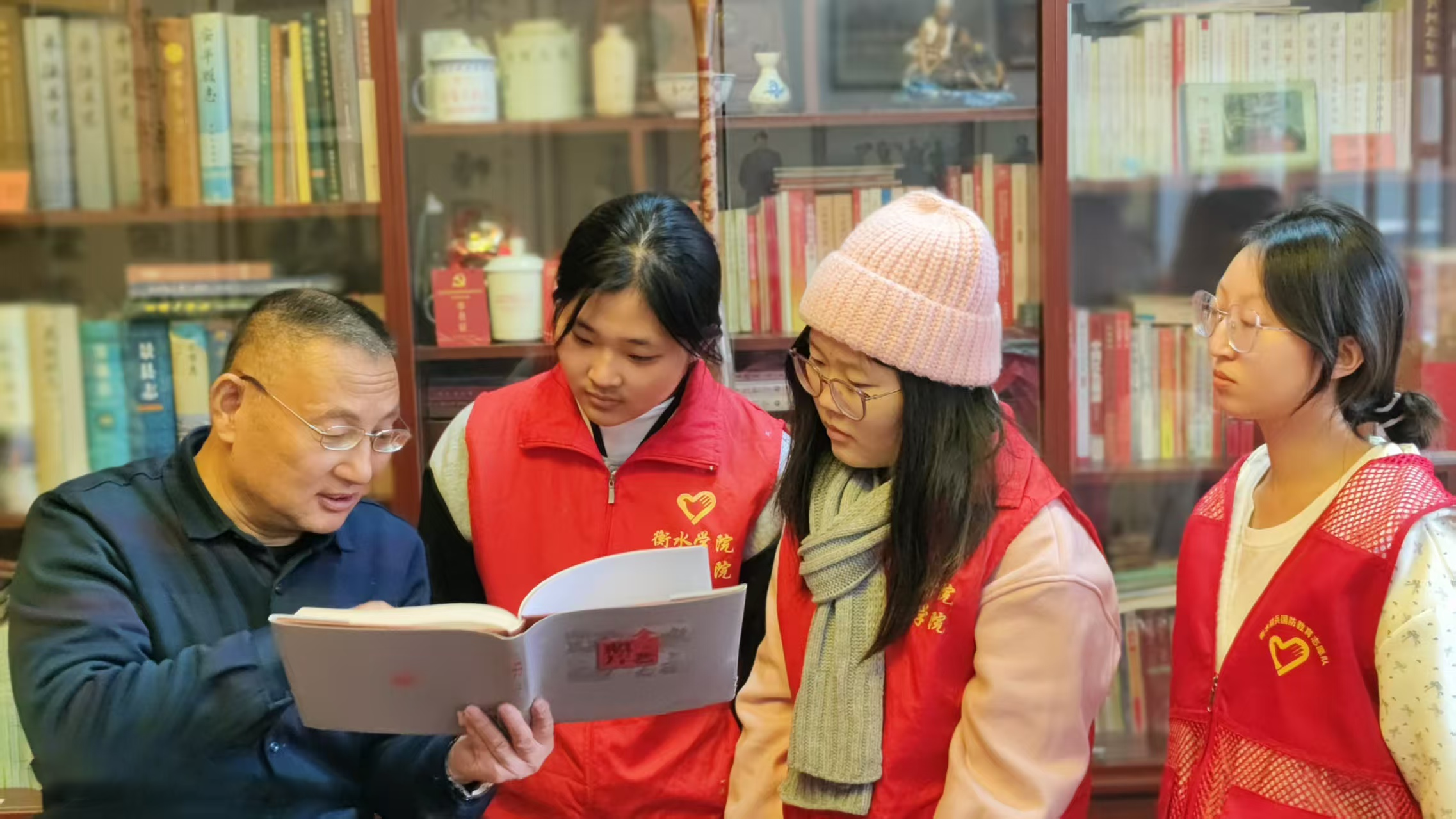 11月6日下午,衡水精兵国防教育志愿队携手衡水学院美术学院大学生,走进衡水市首家红色文化书屋,开展沉浸式红色教育活动。