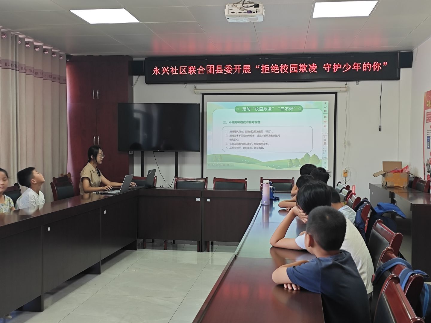 在普法教育方面,各社区结合实际情况,联合公安、司法、团委等多方力量,开展形式多样的法治宣传。董子社区联合枣强镇派出所举办法律知识讲座,围绕防范校园欺凌、网络安全等内容,结合真实案例深入解读相关法律。世纪社区与县司法局合作开展“普法宣传进社区”活动,面向孩子与家长讲解不良行为的法律后果与自我保护方法。永兴社区通过法治短片、互动问答等形式,将法律知识融入情景故事,提升学生兴趣与参与度。