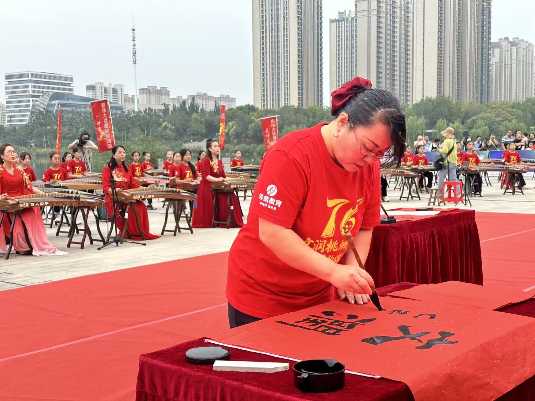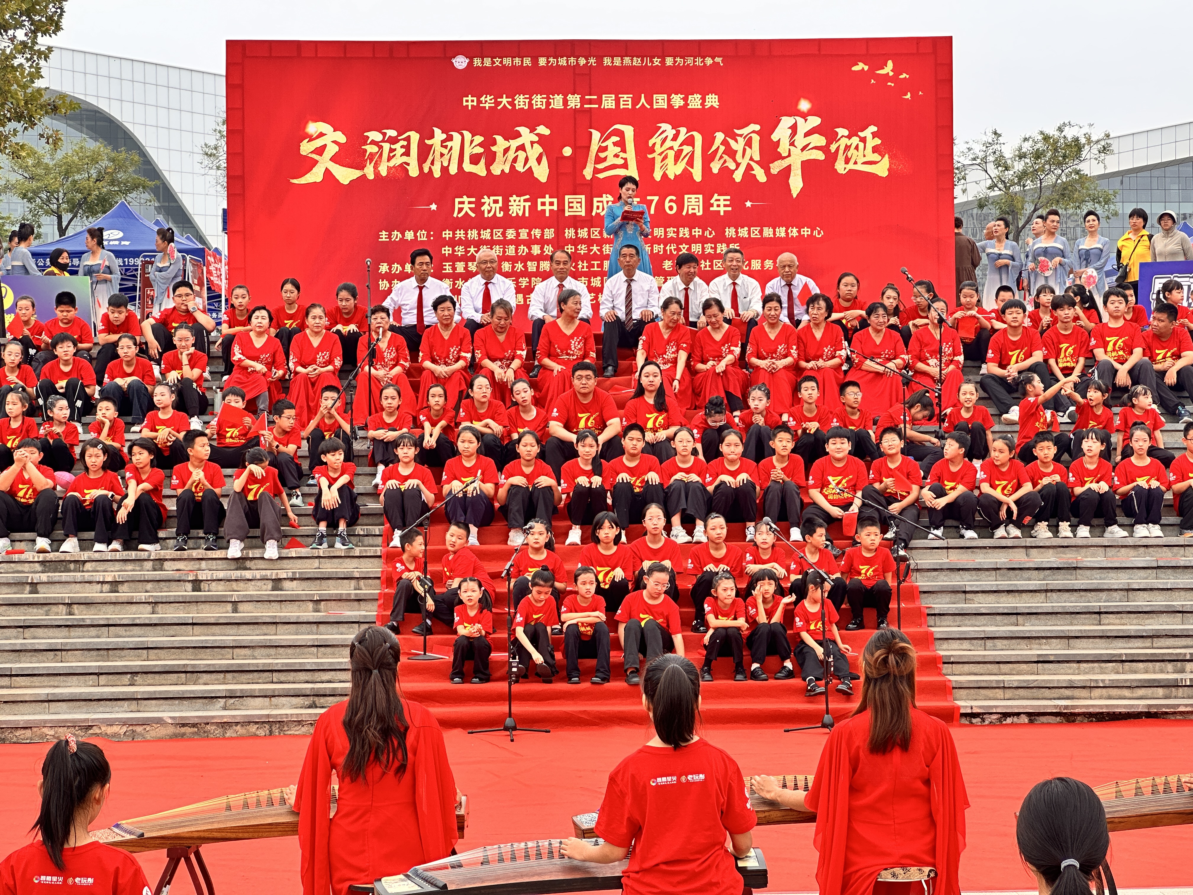 10月1日下午,滏阳河畔,保利剧院广场筝声悠扬、鼓乐铿锵,“文润桃城·国韵颂华诞”庆祝新中国成立76周年国乐盛典暨中华大街街道第二届百人国筝庆典在此隆重举行。近百名古筝演奏者与众多文艺工作者齐聚一堂,以国乐为媒,为现场观众带来一场浸润心灵的文化盛宴。