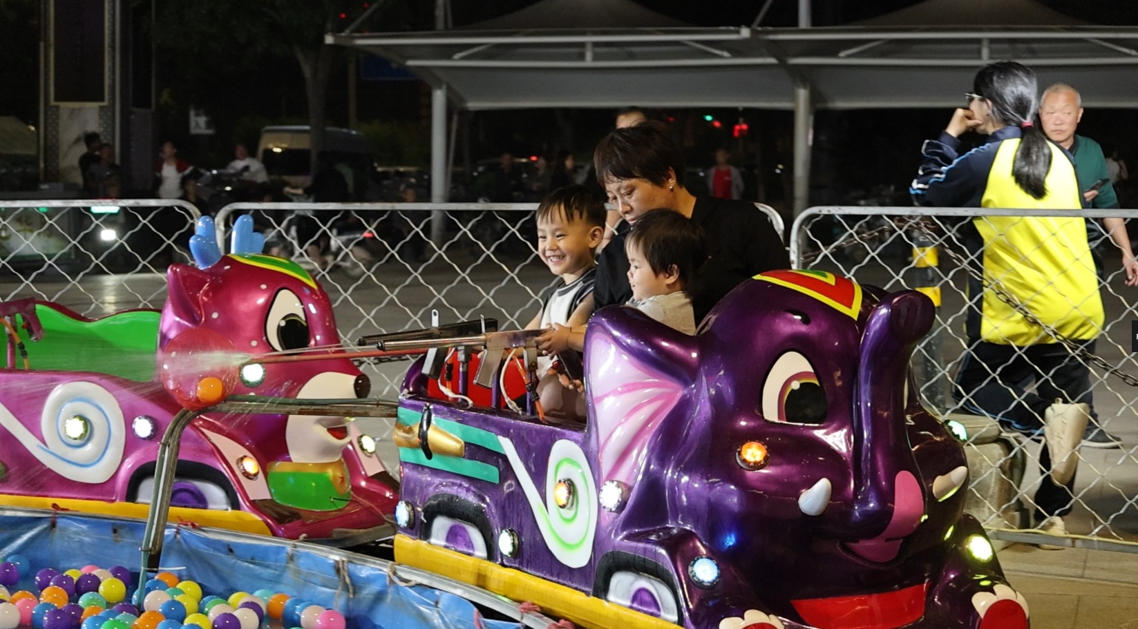 除了精彩演出,古城多元业态也让游客“留得住、玩得爽”。特色美食区汇集天津狗不理包子、重庆酸辣粉等各地小吃,满足游客的味蕾需求。非遗展示区邀请全国展商,现场演示陶壶制作、糖画、手工编织等技艺,游客可亲手体验非遗魅力。游乐区配备迪士尼恐怖城、豪华过山车等设施,成为亲子游玩、年轻人解压的好去处。