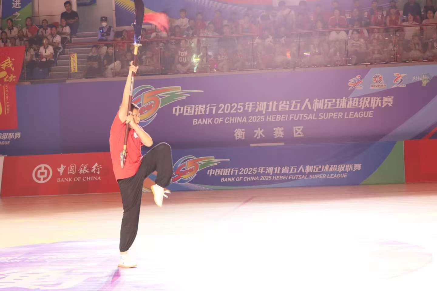 根据衡水市“各区县轮流提供赛事演出”的机制,本轮比赛由冀州区为现场观众带来了一场视听盛宴。赛前暖场阶段,极具冀州地方特色的武术《三皇炮锤定九州》率先点燃了全场气氛,刚劲有力的招式与行云流水的动作,淋漓尽致地展现了本地文化的魅力,赢得了阵阵掌声。