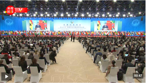 10月13日上午,国家主席习近平在北京国家会议中心出席全球妇女峰会开幕式并发表主旨讲话。