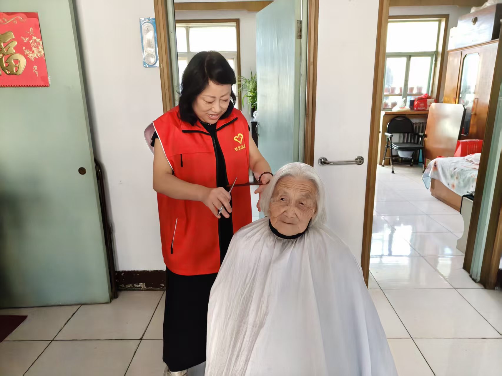 活动当天,志愿者们携带清扫工具、理发设备及血压仪分批上门。在高龄老人滕奶奶家,志愿者迅速分工协作:有的擦拭窗户、拖洗地板,有的整理杂物,短短时间内便让原本略显杂乱的屋子变得整洁明亮;有多年理发经验的志愿者徐春燕,根据滕奶奶的喜好细心修剪发型,还不忘用小刷子扫去碎发;健康服务组志愿者则耐心为老人测量血压,仔细记录数据,并针对血压偏高的情况,叮嘱老人“日常饮食要少盐少糖,注意规律休息”。