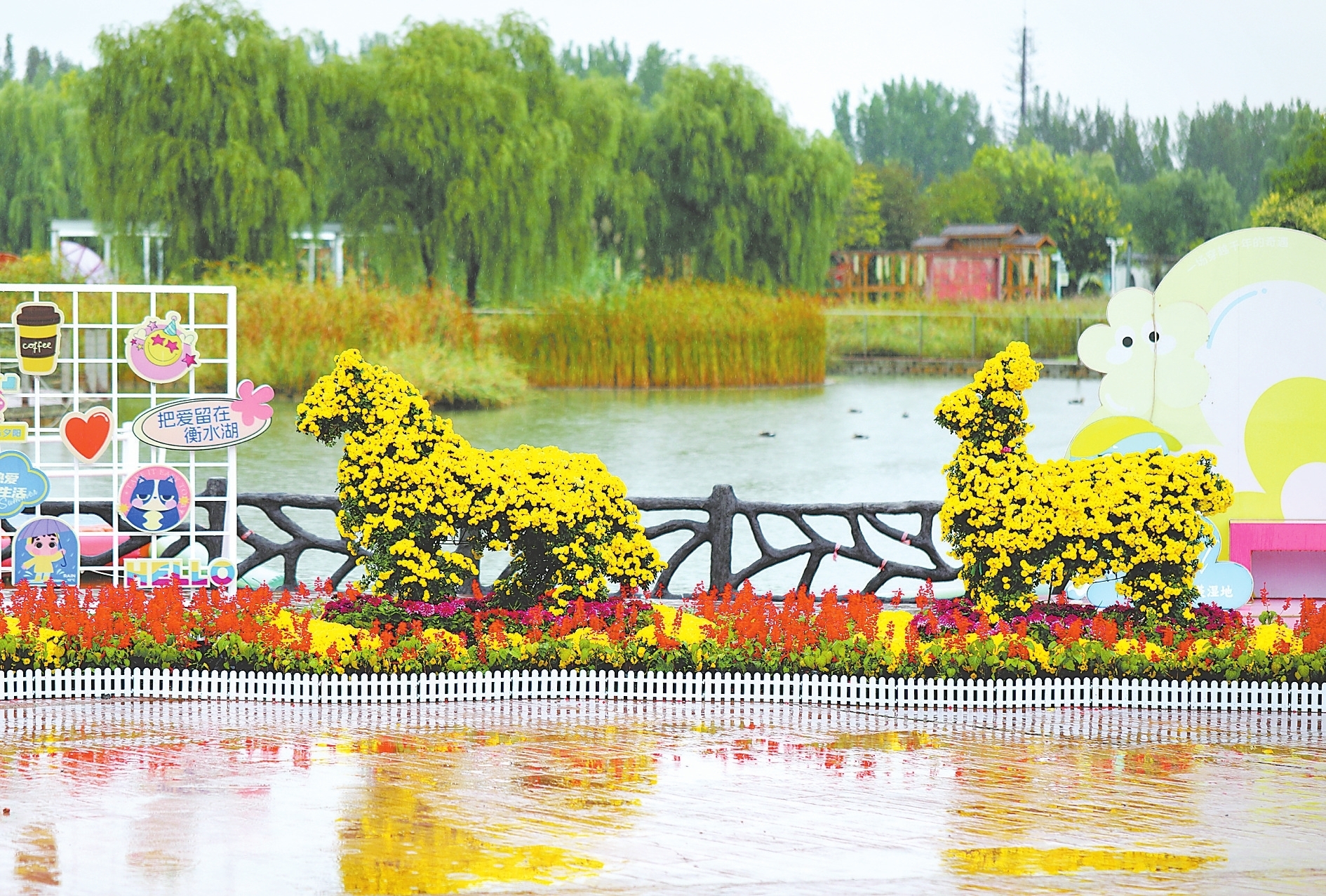 雨中的衡水湖若是一首淡雅的诗,景区内的金秋菊花展便是诗中最浓墨重彩的章节。