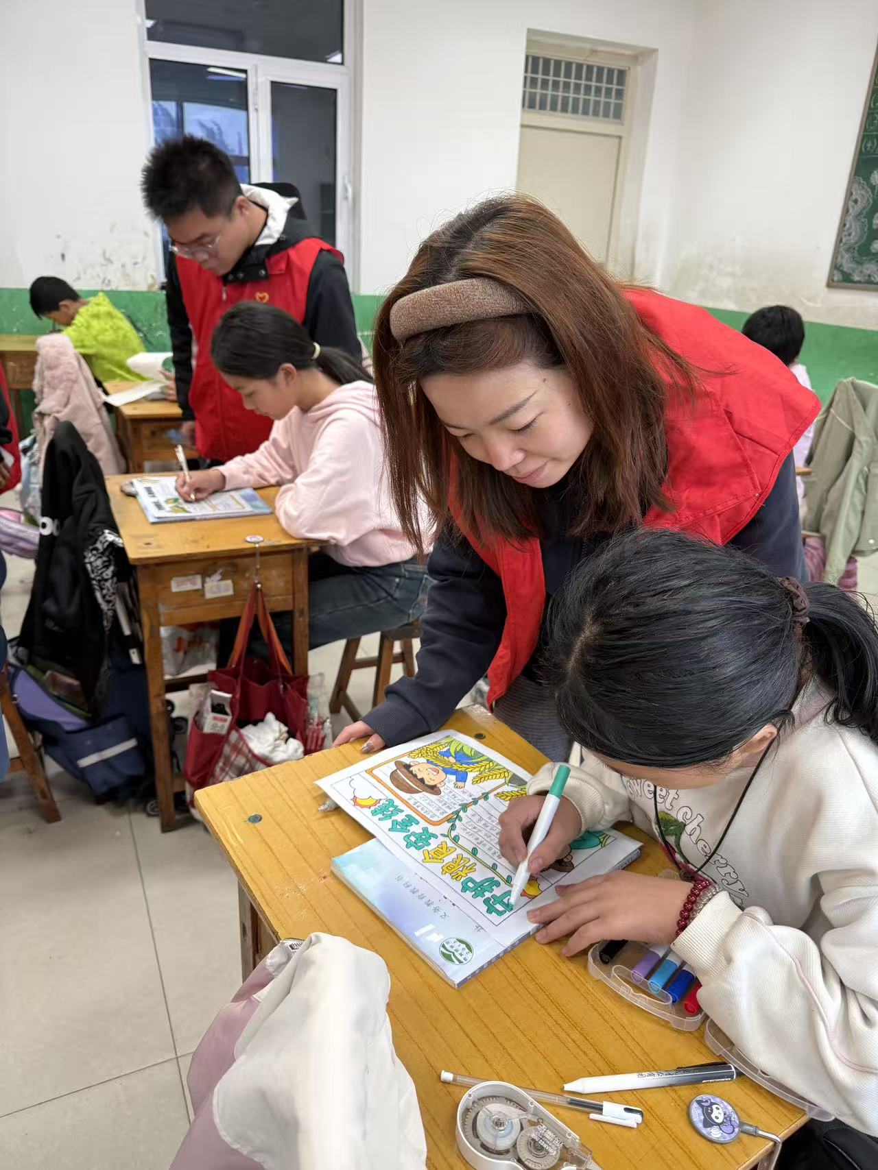随后的手抄报创作环节,学生们拿出画笔、彩纸,充分发挥想象力与创造力,围绕“粮食安全”主题进行创作。有的以“节约粮食,从我做起”为主线,画出浪费粮食的警示场景与节约小妙招;有的聚焦“守护粮食安全线”,用图文结合的方式展现我国粮食生产成就以及当前粮食安全面临的挑战。创作过程中,王集乡新时代文明实践所的党员志愿者们穿梭其间,耐心指导学生们构思内容、搭配色彩,同时结合全球粮食危机案例、我国粮食安全战略,为大家讲解“为何要节约粮食”“如何守护粮安”等内容。一幅幅色彩鲜艳、内容丰富的手抄报,不仅是学生们艺术才华的展现,更成为粮食安全知识的“移动课堂”。