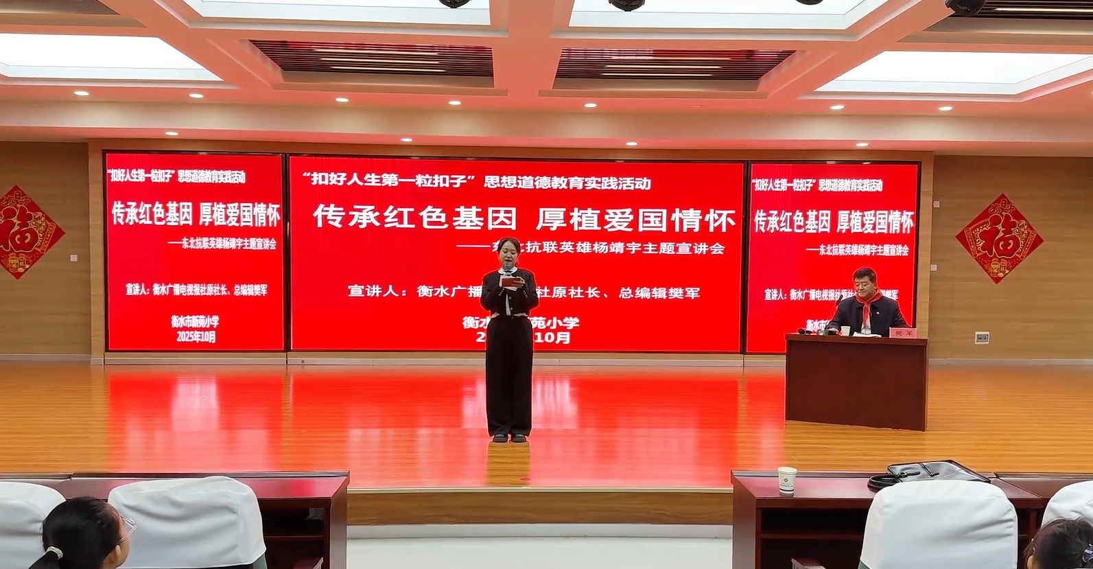 10月21日,衡水市新苑小学开展东北抗联英雄杨靖宇主题宣讲会。