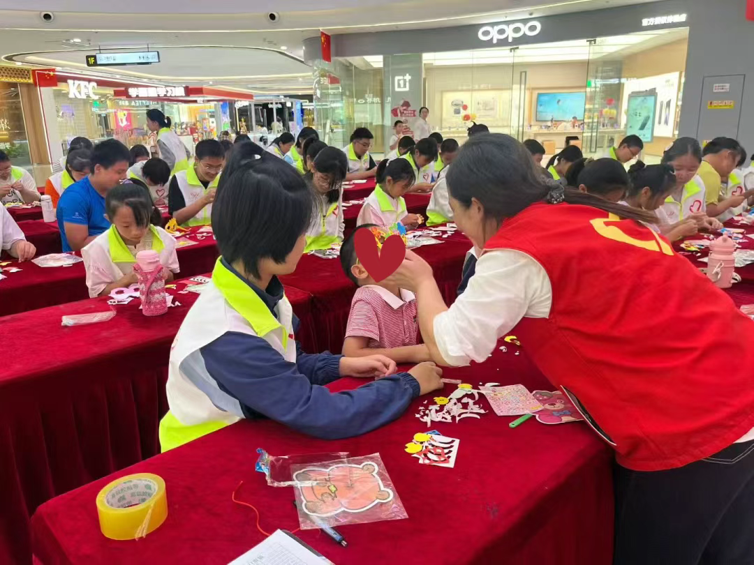 10月4日,组织市同心青少年志愿服务中心“湖小荷”志愿者在万达广场开展“小橘灯”残健融合手工DIY眼镜活动。普通孩子与特殊儿童两两结对,互帮互助。“湖小荷”志愿者们耐心地为特殊儿童讲解制作要点,特殊儿童积极尝试、认真操作,活动增进了普通孩子与特殊儿童之间的理解与友谊。