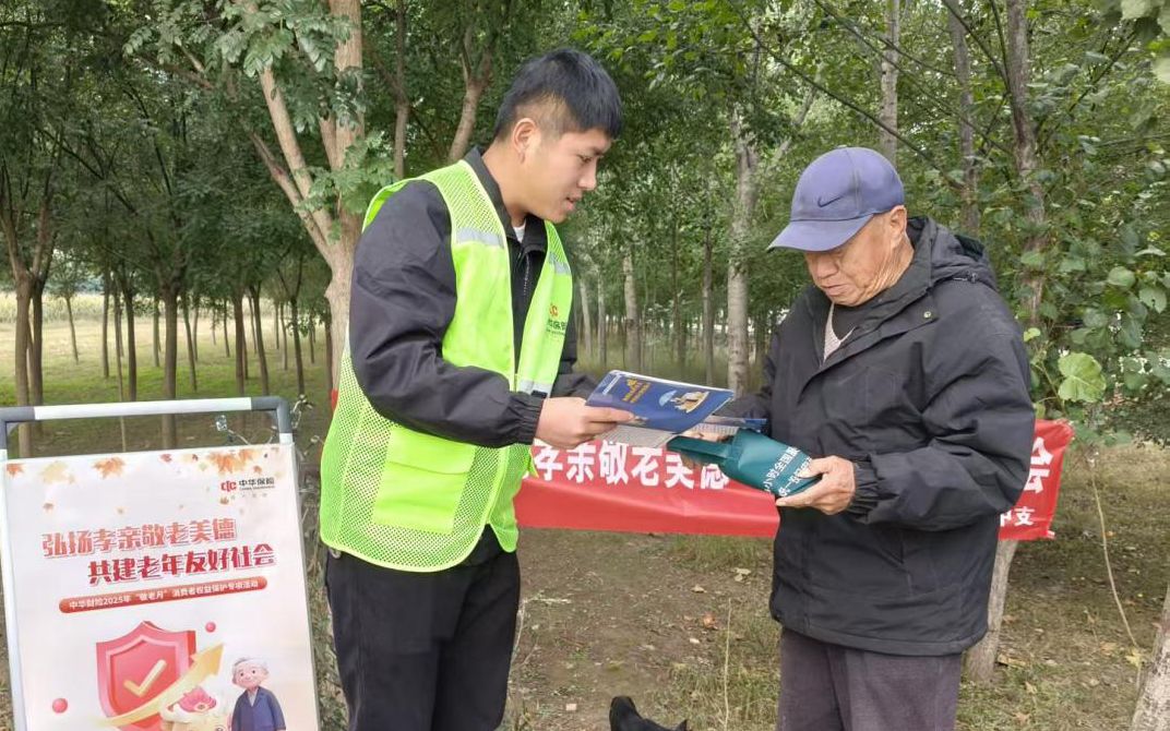 为弘扬中华民族孝亲敬老的优良传统,共建老年友好社会,10月21日,中华财险饶阳支公司组织宣讲队走进刘苑村,开展“敬老月”专题宣传活动,聚焦防范电信诈骗,为村民送去暖心关怀与实用的“反诈锦囊”。