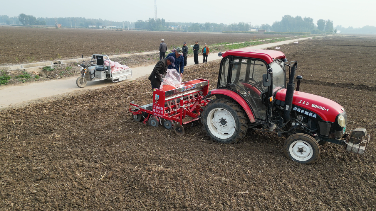 在街关镇乔疃村的田野上,收割机、旋耕机、播种机在不同地块协同作业,玉米收割、土地深翻、小麦播种各环节压茬推进、无缝衔接;与此同时,在蔡留贯村股份经济合作社流转的1100余亩土地上,两台大型旋耕机开足马力开展深翻散墒作业,为后续整地播种、争取来年夏粮丰收打基础。据统计,街关镇共种植玉米66000余亩,目前抢收进度已超95%,冬小麦播种面积也已突破40000亩。