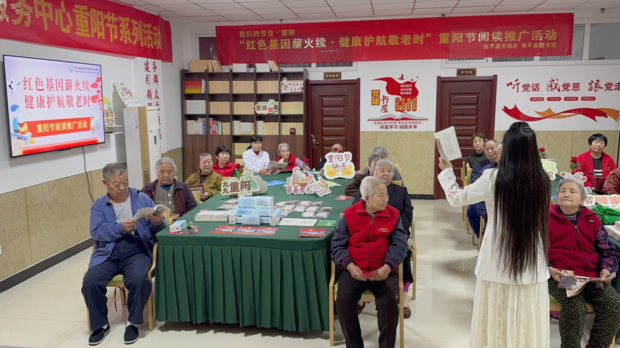 岁岁重阳至,浓浓敬老情。10月29日,安平县图书馆联合县文明办、春晖园敬老服务中心,精心举办了“我们的节日•重阳—‘红色基因薪火续•健康护航敬老时’”阅读推广活动,为老人们送上了一份独特的节日厚礼。