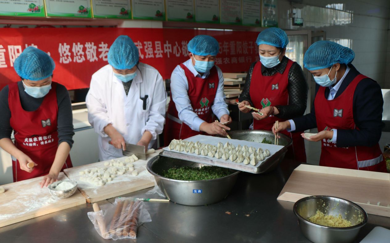 活动现场,武强农商银行工作人员围坐在一起分工协作,挽起袖子揉面、擀皮、调馅、包饺子,动作娴熟且满含热情。大家一边有条不紊地忙碌,一边念叨着老人们的饮食喜好,“多做些老人偏爱的软口馅料”“饺子皮擀得薄一点才好消化”,满心都是对老人的细致牵挂与对他们吃饺子时笑容的期待。一个个饱满的饺子不仅包裹着新鲜的馅料,更承载着武强农商银行对老人们的深切祝福。